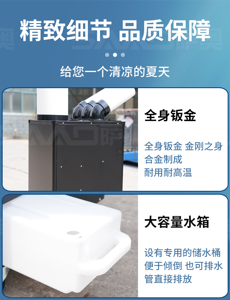 適應各種大面積場所快速降溫:辦公場所降溫 汽車維修降溫 車間制冷 室內制冷 集裝箱制冷 線上降溫 廚房降溫 車間崗位降溫