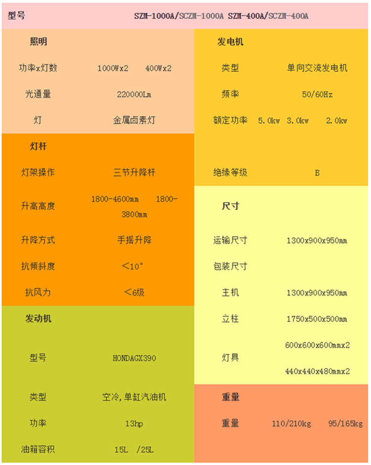 產品名稱:工程照明車 產品型號:SZM-1000A/SCZM-1000A SZM-400A/SCZM-400A 產品介紹: 用于體育場館、機場、碼頭等大型公共場所,公路、鐵路、電力等緊急搶險現場,露天采礦現場,以及防洪防汛、搶險救災現場等其他需要緊急備用光源、電源的場合。