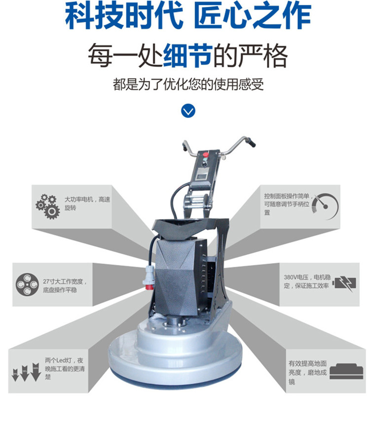 拋光機是為了讓地面表面有光澤,需要先研磨后才可以拋光。拋光分為粗拋和精拋,這時候可以使用拋光機,配合拋光墊,提高地面的光澤度。高速地坪拋光機讓你輕松完成地坪拋光工作,提高地坪亮度。