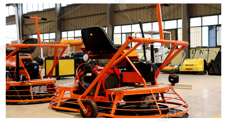 座駕式混凝土抹光機用于混凝土地面的提漿、壓實、抹平、抹光。相對于手扶式抹光機,效率極高。