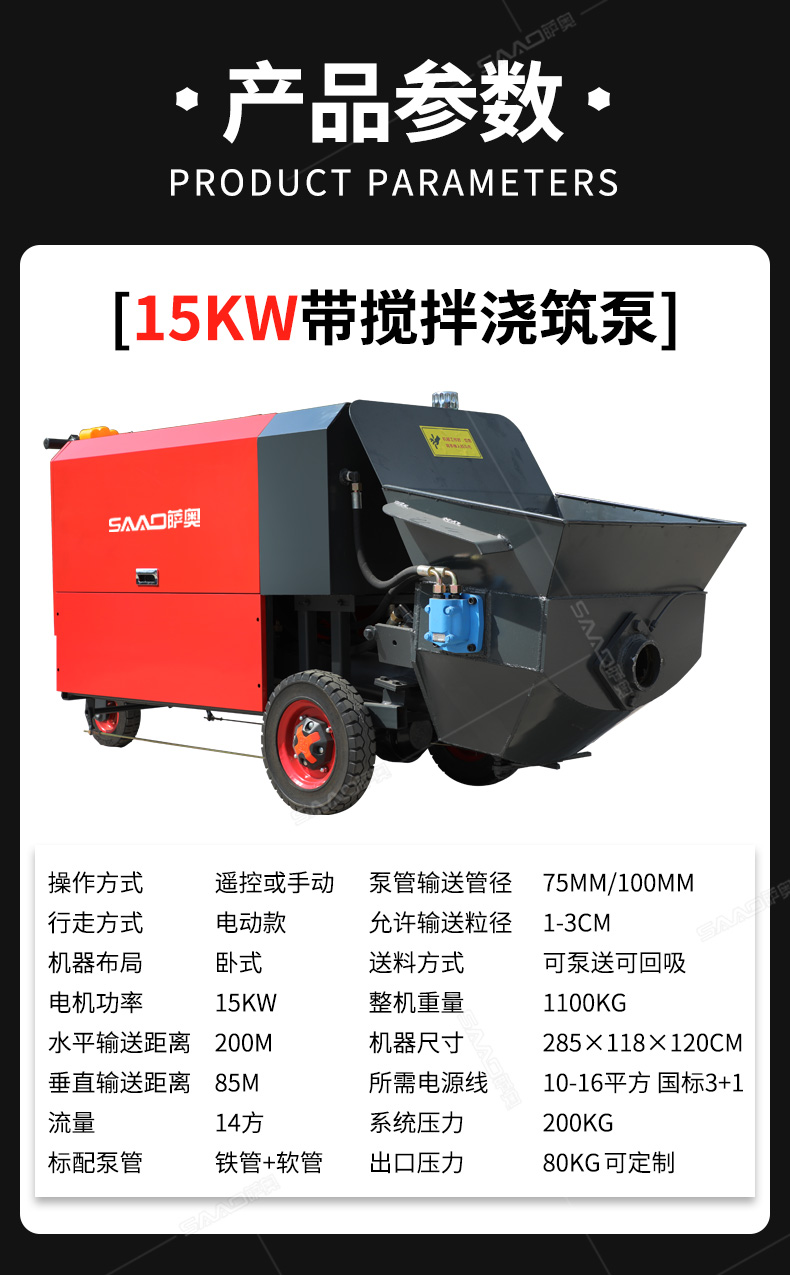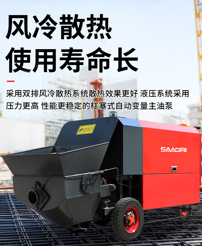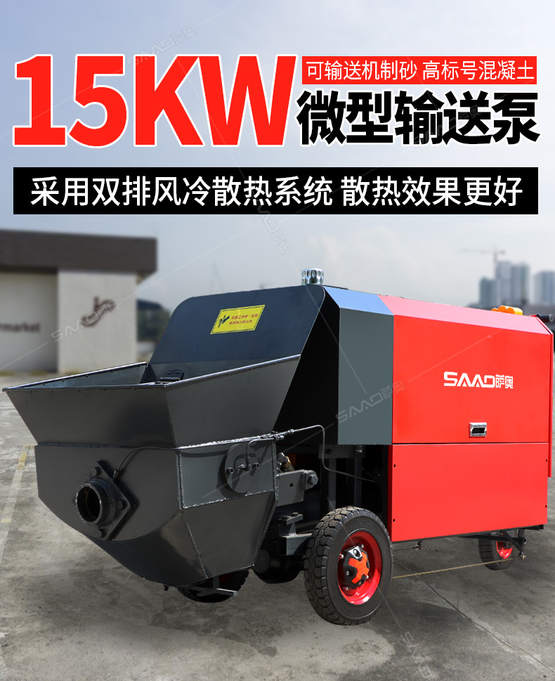 15kw風冷散熱澆筑泵采用雙排風冷散熱系統,散熱效果更好。