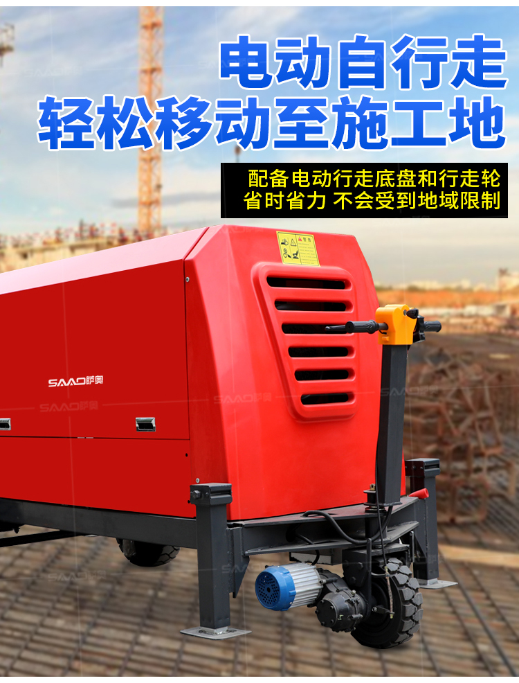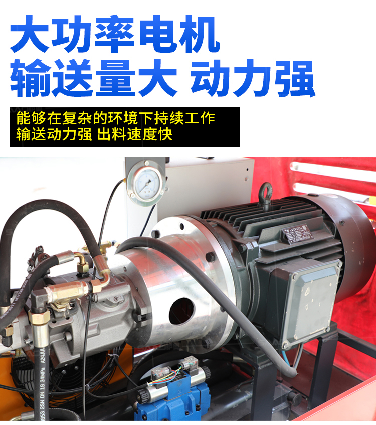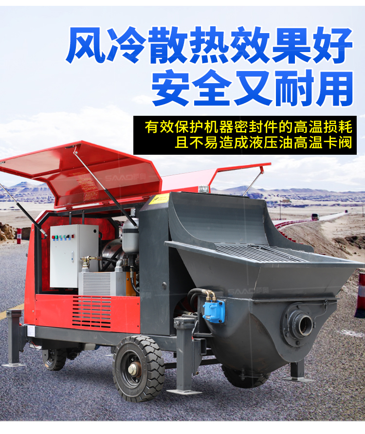 采用獨(dú)創(chuàng)的泵車尾輪驅(qū)動(dòng)系統(tǒng)輕松解決移動(dòng)時(shí)帶來(lái)的各種困難;采用雙排風(fēng)冷散熱系統(tǒng)散熱效果更好,液壓系統(tǒng)采用壓力更高,性能更穩(wěn)定的柱塞式自動(dòng)變量主油泵,采用先進(jìn)的三維立