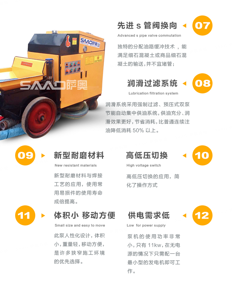 11KW臥式混凝土澆筑泵廣泛應用于二次構造柱填充、地暖工程、屋面、高層建筑的墻、水庫、水電站、港口、碼頭、基礎處理、軟弱地基、加固注漿、隧道、地鐵、礦山施工中回填灌漿錨桿支護。
