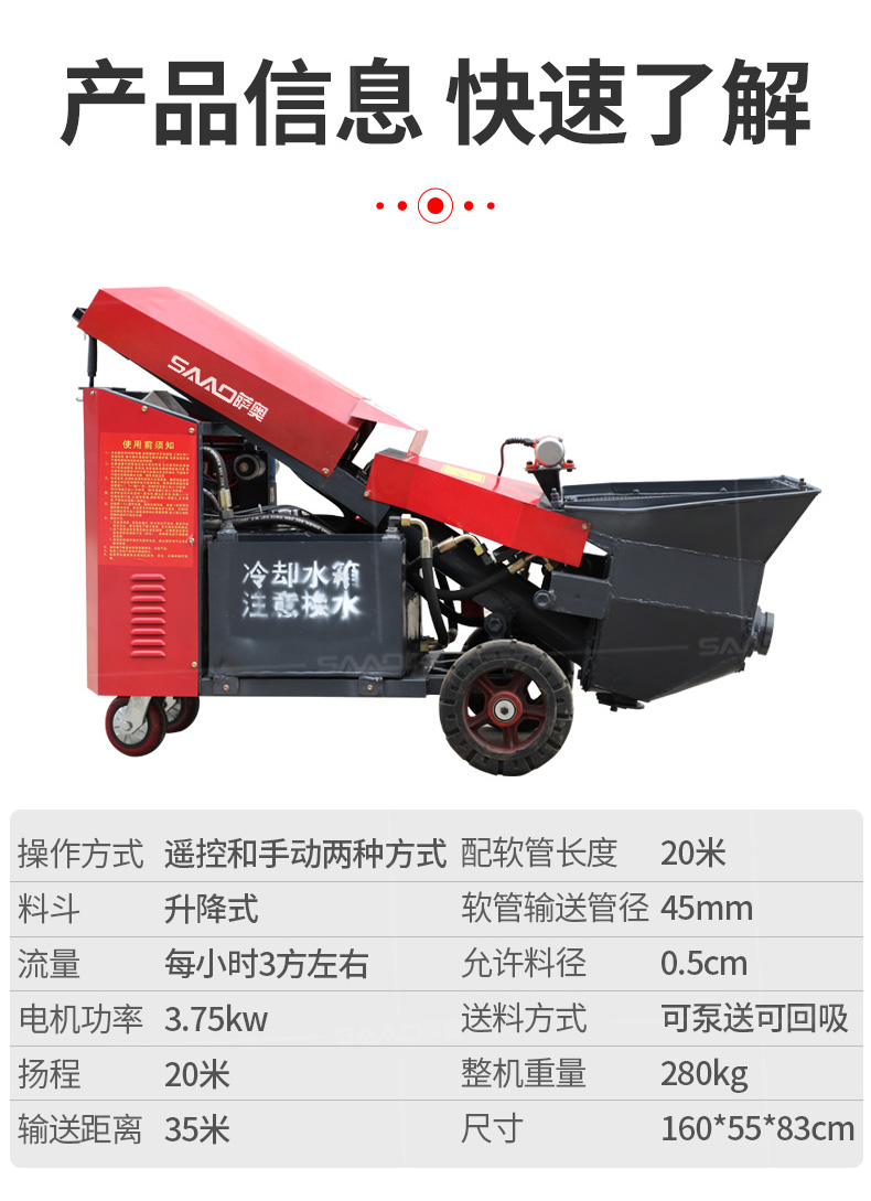 該設備適用于二次構造柱、高層樓房建設輸送、樓層地面澆筑。
