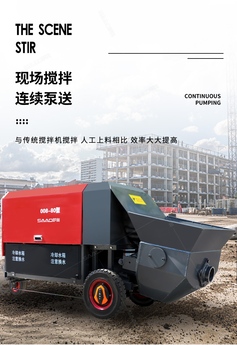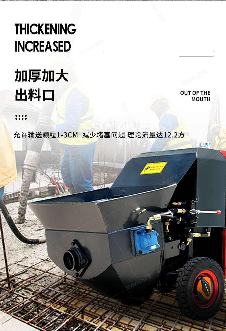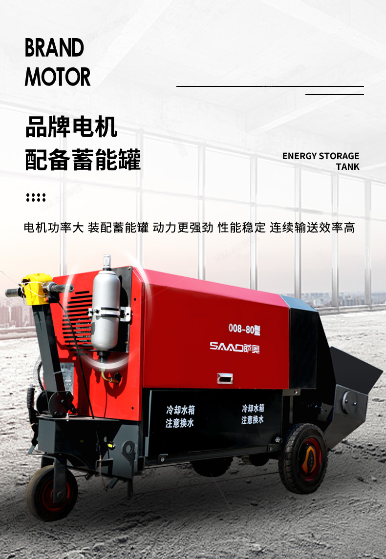該設備具有電機功率大、性能穩定、施工效率高等優勢,使用電動澆筑泵大大提高了施工效率,降低勞動強度,節約人工,被廣泛應用。具體產品詳情如下:
