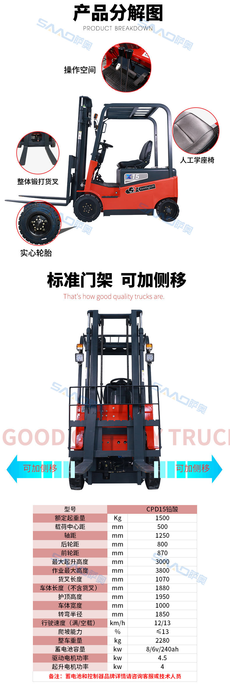 CPD1.5噸四輪座駕式鉛酸電動叉車