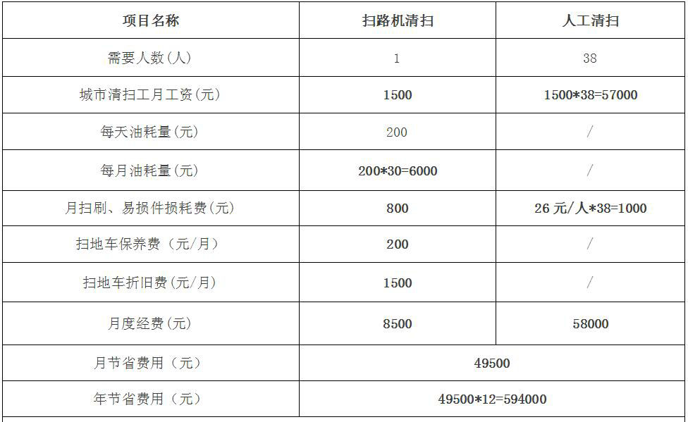 結論:薩奧路面保潔養護清掃機每年可至少節省費用將近60萬元。