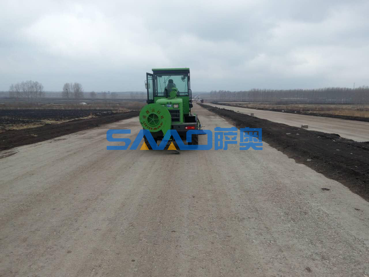薩奧道路施工強力清掃機(SA160QT),吹掃一體機,動力強勁、垃圾可回收,邊掃邊吹風,一次性徹底解決路面垃圾厚的問題,大容積垃圾箱裝料多,自動掃水降塵、自動卸料,垃圾非常方便裝車,裝車高度3米、自動檔駕駛操作簡單靈活,兩邊盤刷作業讓死角無殘留,是道路施工路面垃圾清掃設備,專業用于高速公路、市政建設和路橋建設過程中水穩層及銑刨路面的清掃工作。