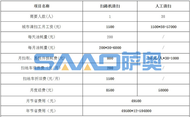 結論:薩奧路面保潔養護清掃機每年可至少節省費用將近60萬元。