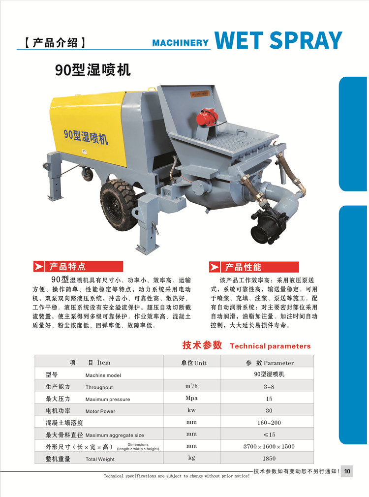 這款混凝土濕噴機(jī)主要用于混凝土的噴濕,可用于噴漿、充填、注漿、泵送等工程施工。能使混合料拌合均勻,水灰比準(zhǔn)確控制,有利于水泥的水化,因而粉塵小,回彈小、混凝土均質(zhì)性好,強(qiáng)度高。結(jié)構(gòu)合理、性能穩(wěn)定、操作維護(hù)方便、使用壽命長,應(yīng)用于鐵(公)路,地鐵,高層建筑,護(hù)坡(基坑)加固,水電工程,地下工程及礦山井巷噴射混凝土施工作業(yè)。
