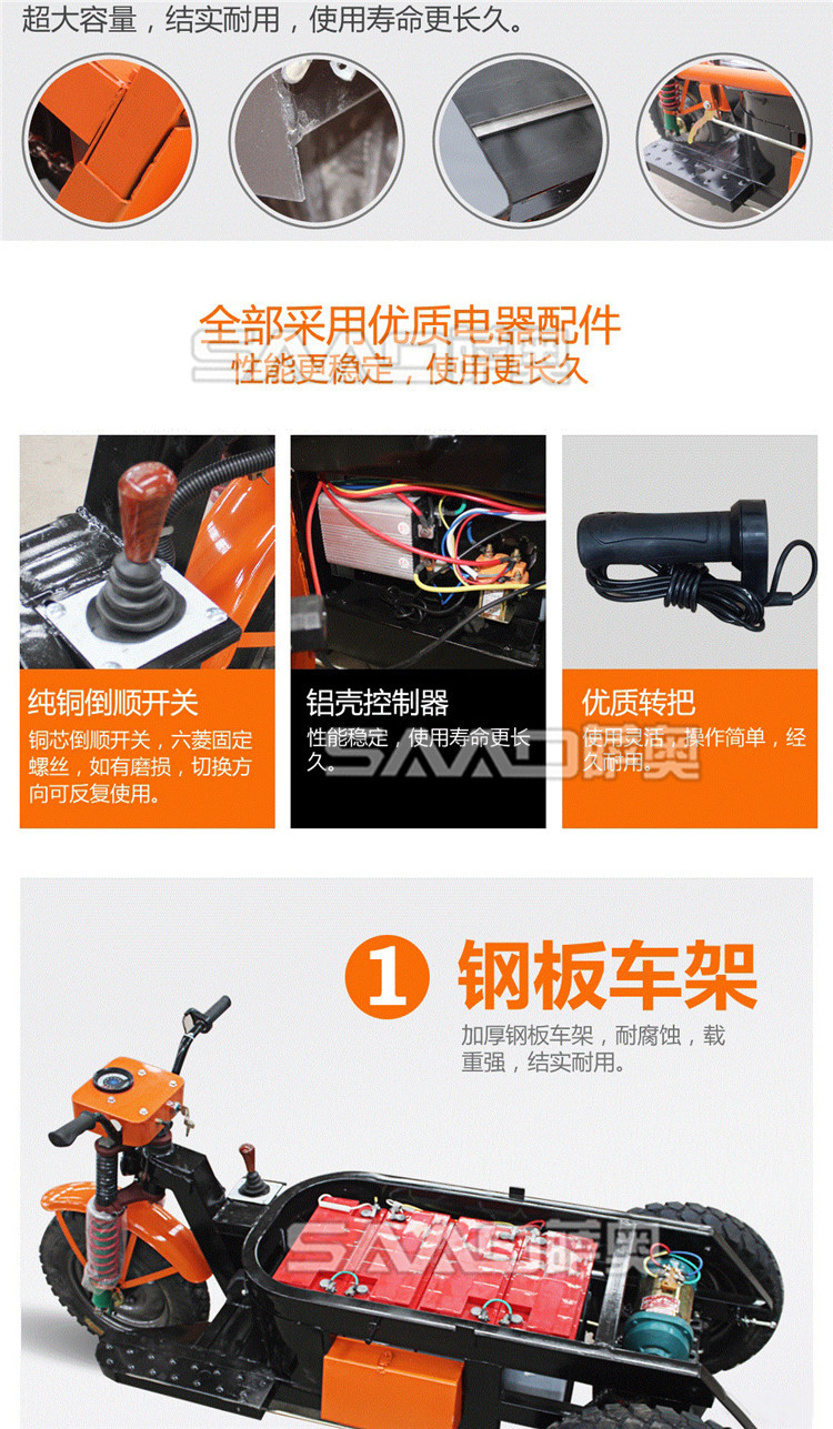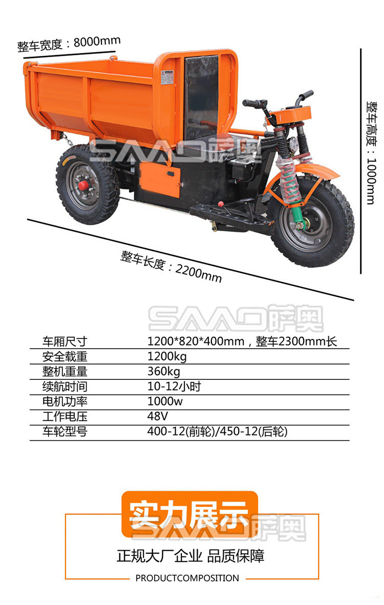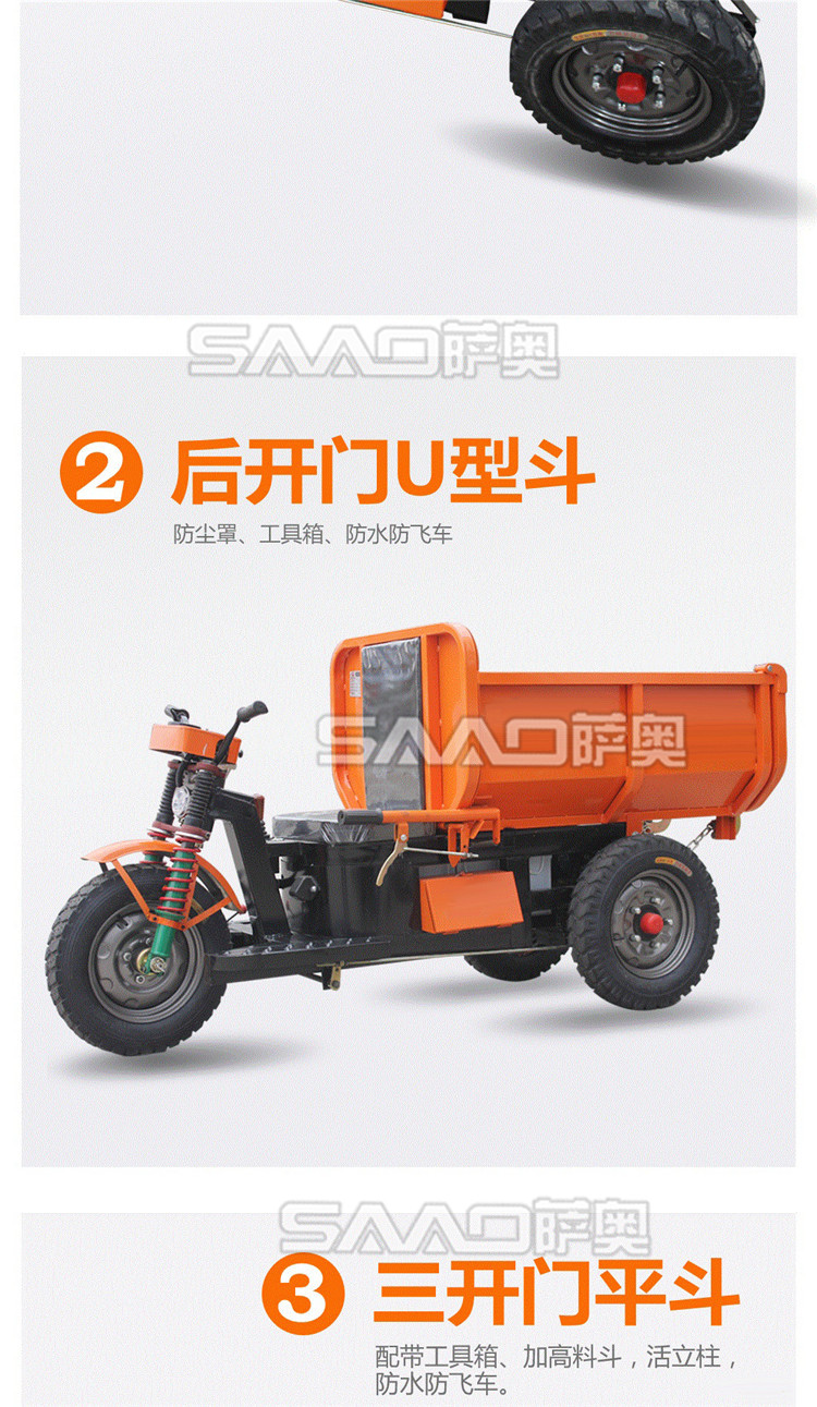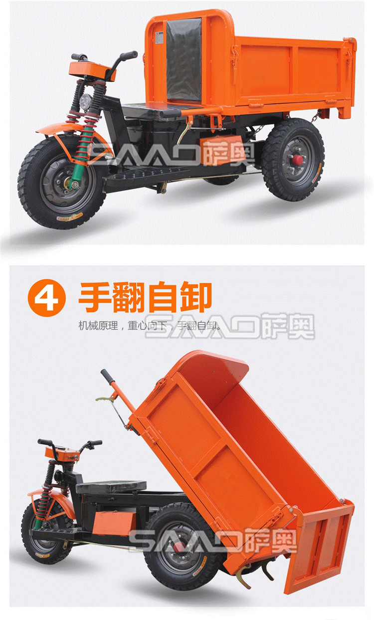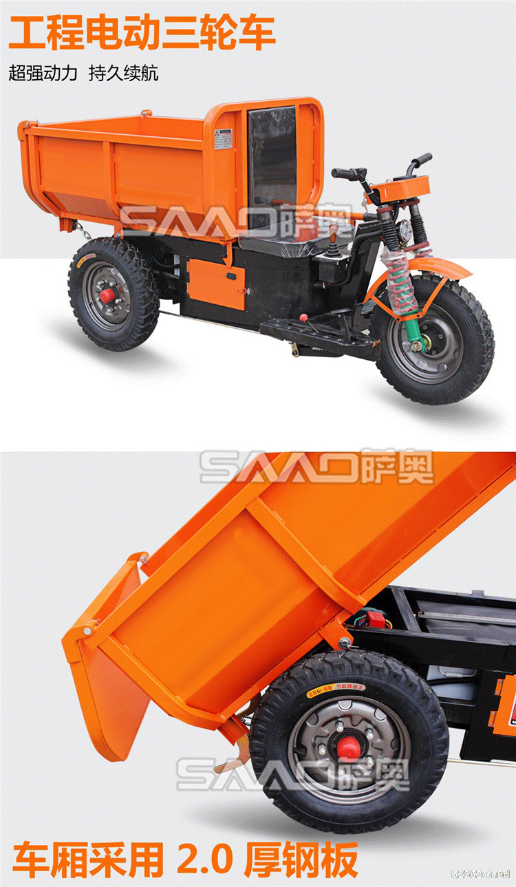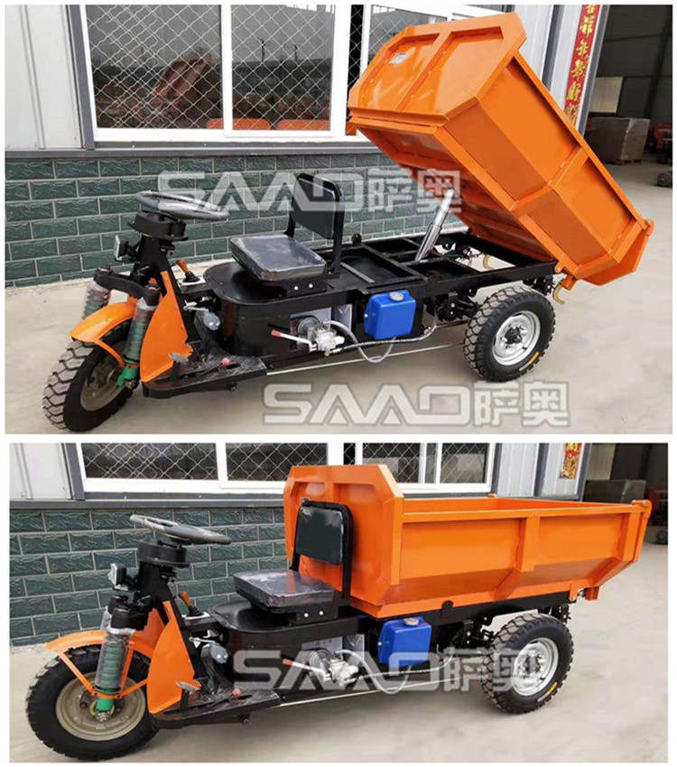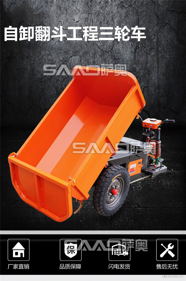 此款車適用于建筑工地、室內裝修、養殖場、工廠等場所,運輸沙子、水泥、土方、混凝土、建筑垃圾生活垃圾、養殖場動物糞便、飼料等,體積小操作簡單靈活,可原地360度轉圈,可