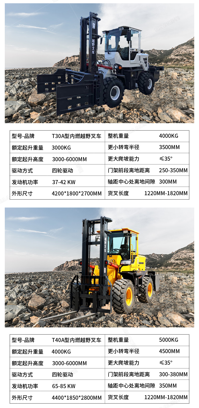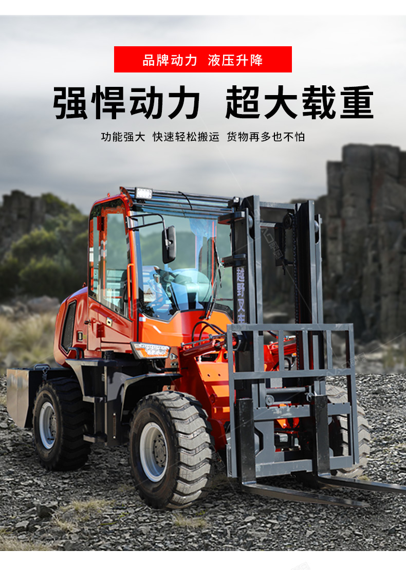 5.越野叉車車身寬大,能承載不規(guī)則和寬大的