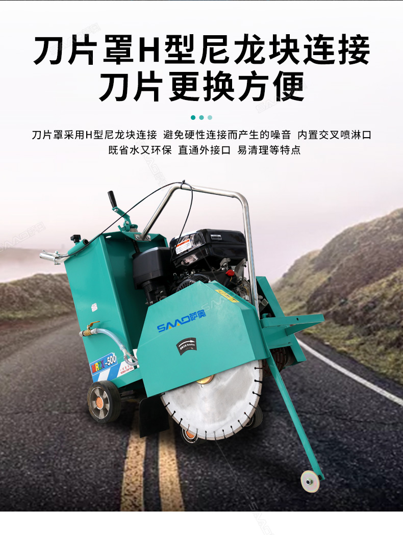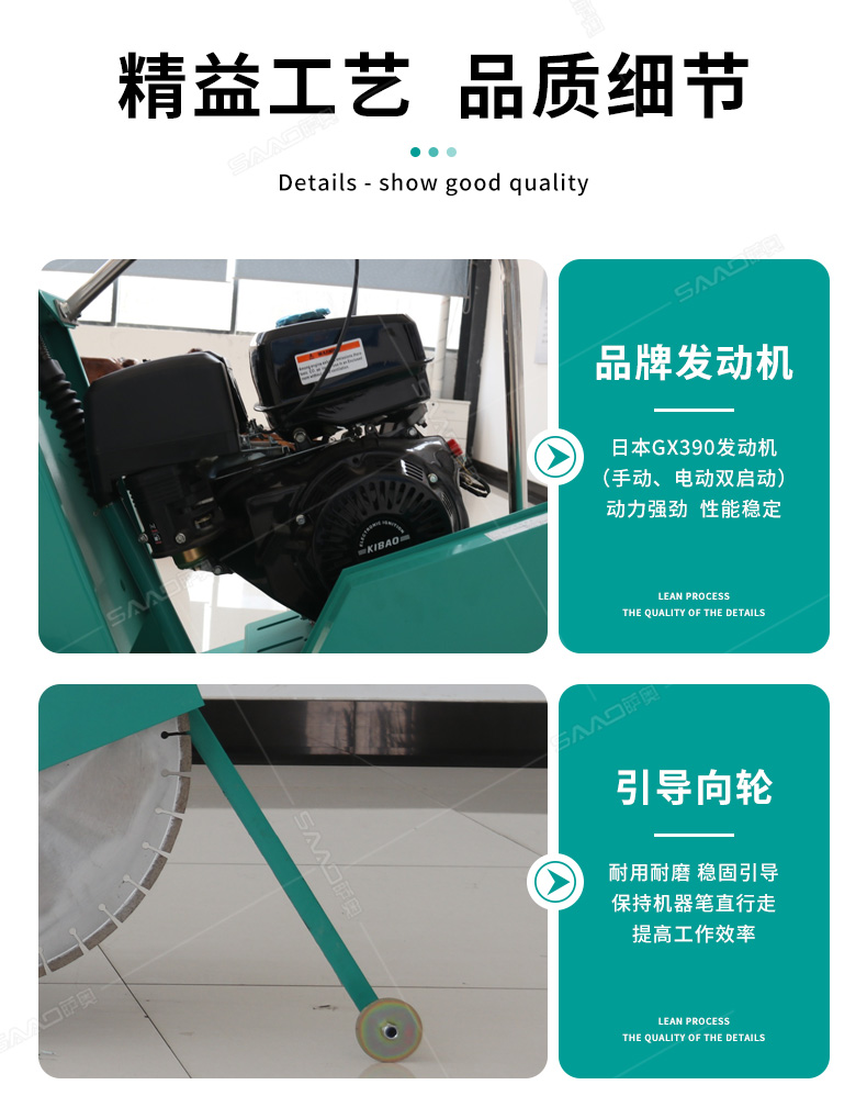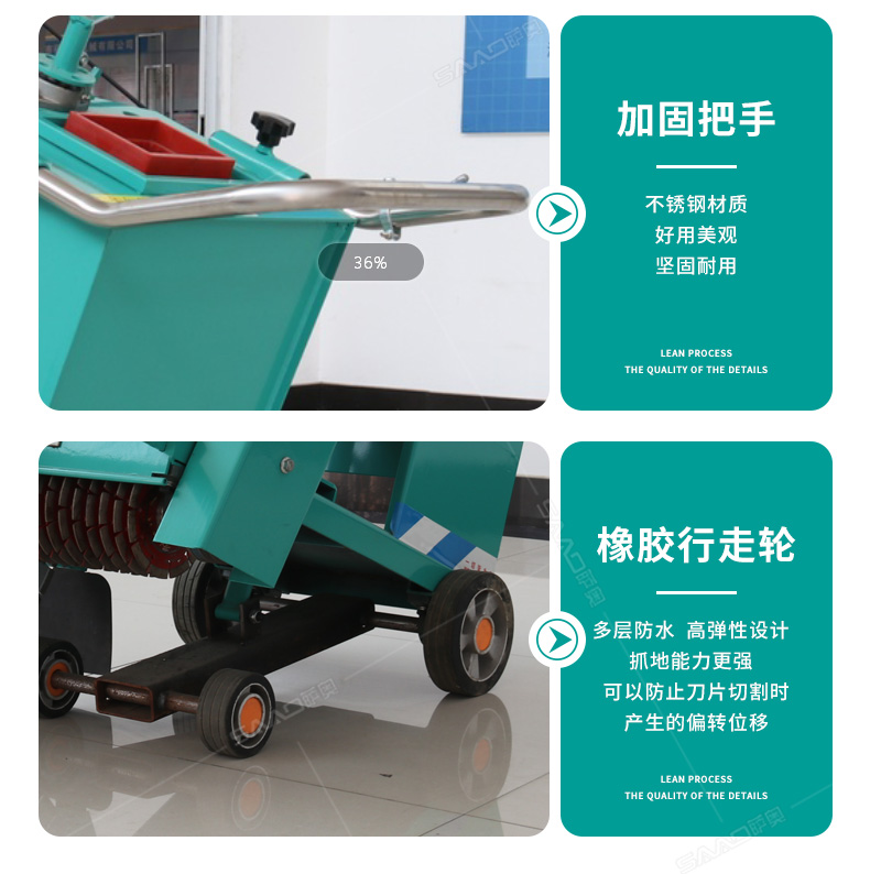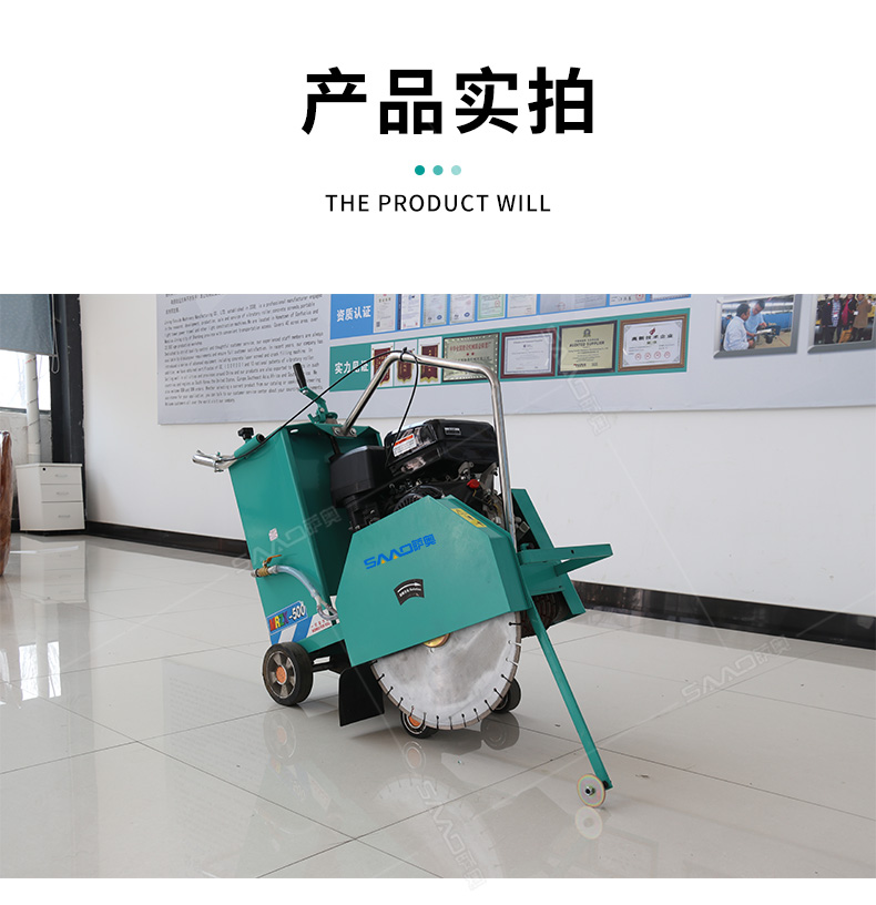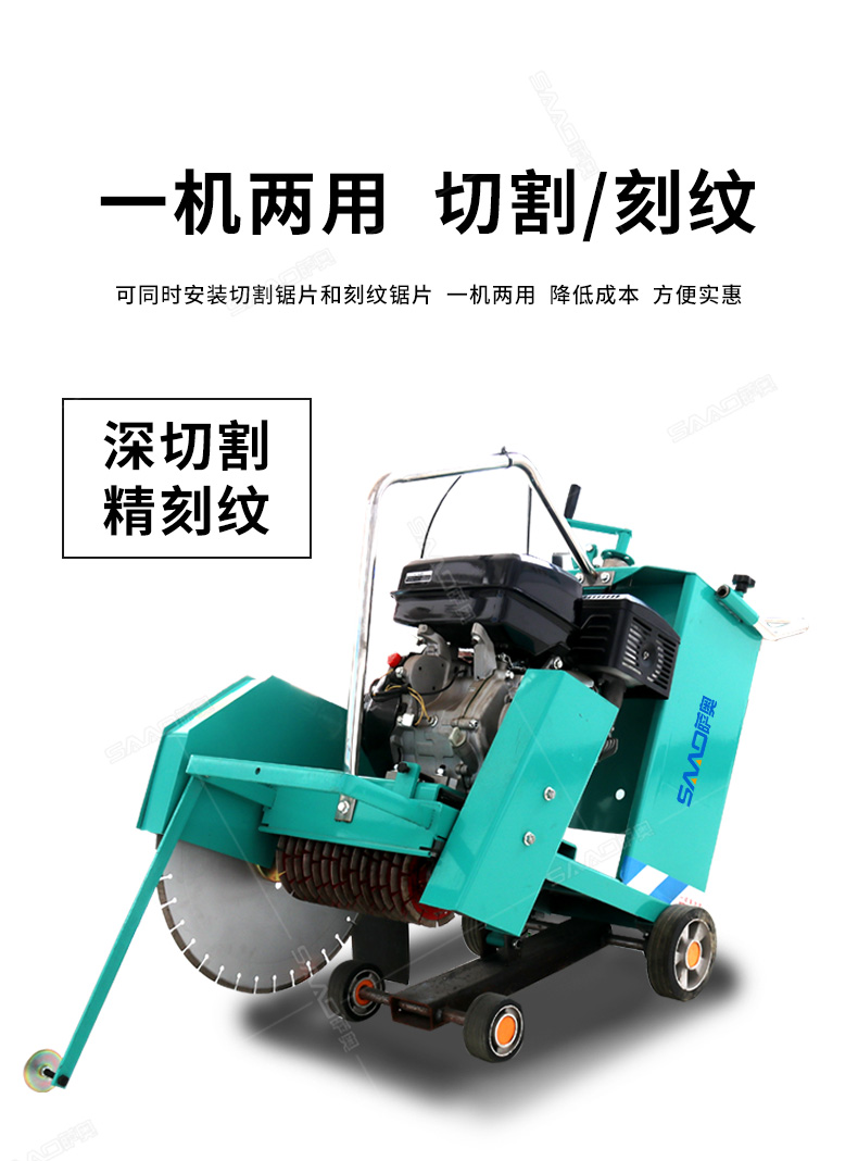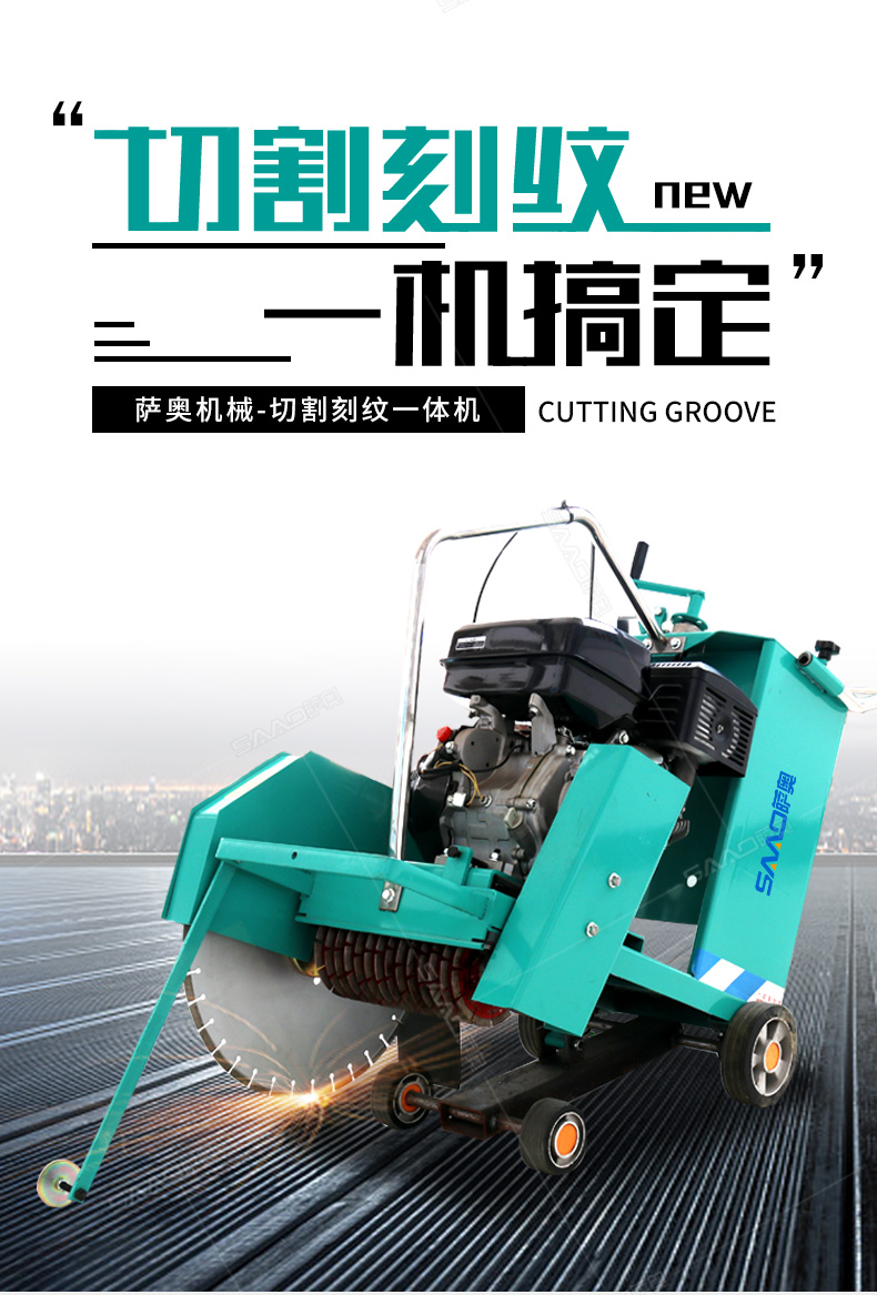 開槽刻紋兩用機產品特點: 1.發動機水平軸:軸徑25,7mm槽鍵 2.切割機刀片主軸軸承采用日本NSK調心球軸承,壽命長。 3.切割機皮帶采用進口V型三角帶,抗耐磨、抗高溫,壽命長。 4.前