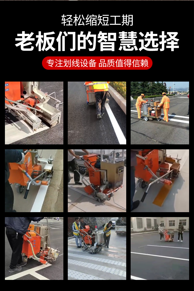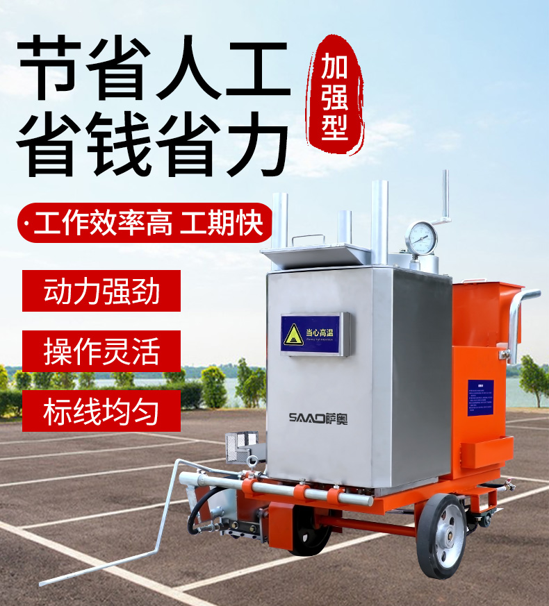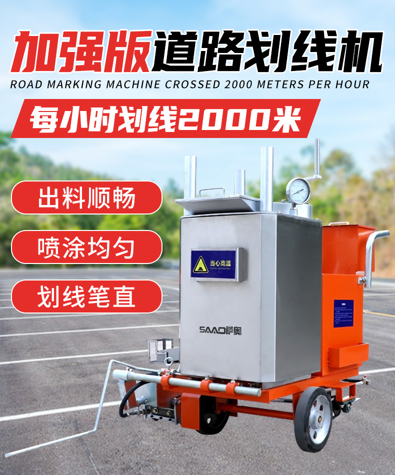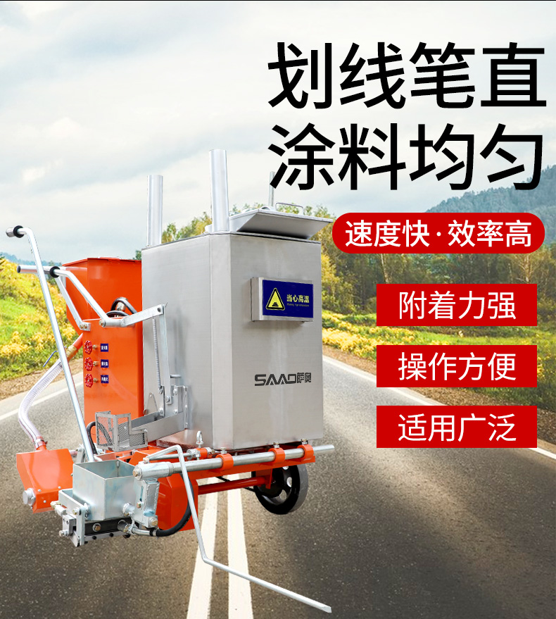 一:產(chǎn)品用途 多功能熱熔劃線機(jī)是我公司根據(jù)市場需求,獨(dú)立研發(fā)生產(chǎn)的一款新型劃線機(jī),該機(jī)集熔料與劃線一體,可獨(dú)立完成各類線型的施劃。對工程量較小零散復(fù)雜的停車位、場區(qū)