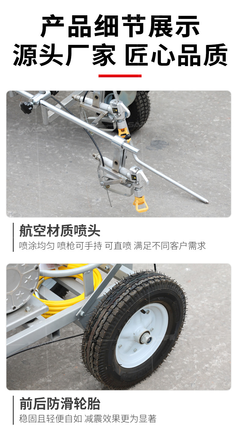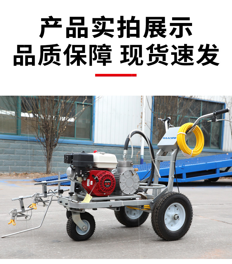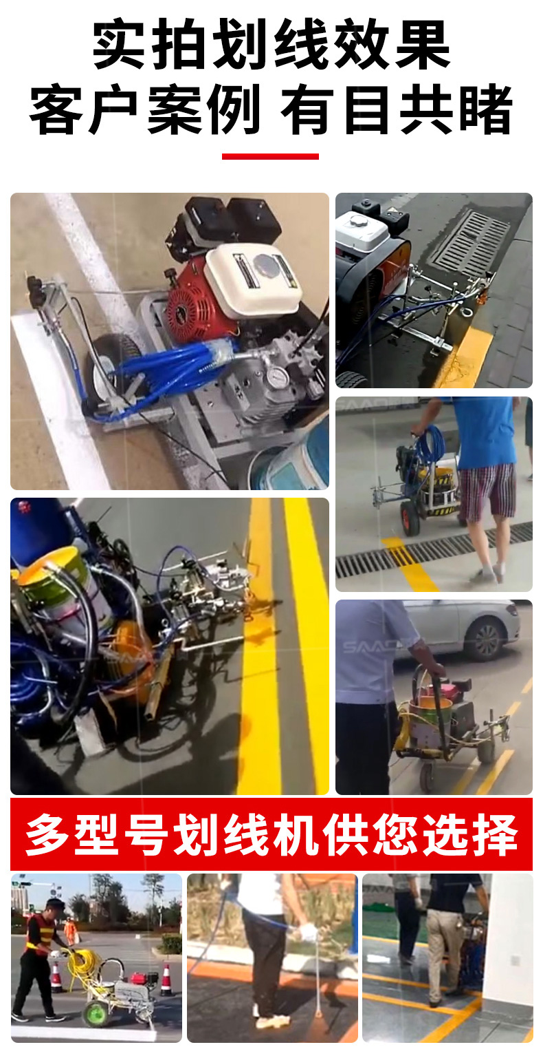 小型手推式道路劃線機是一種在道路、停車場、廣場和跑道等平整地面上劃出不同約束、指引和警示等規則限制標志的路面施工機械。最常見的就是在馬路上劃斑馬線,在路上劃車庫線
