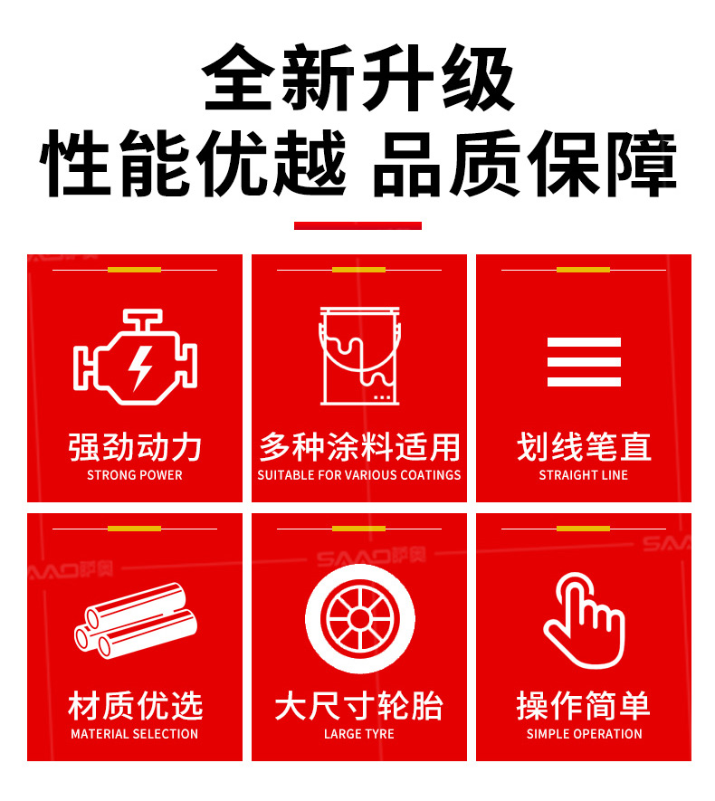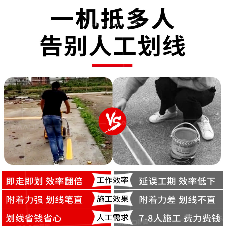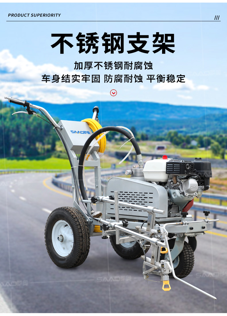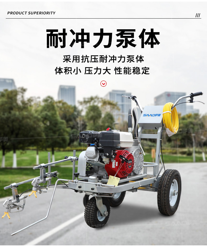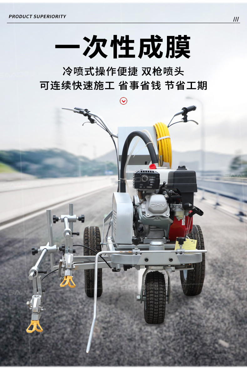 小型手推式道路劃線機是一種在道路、停車場、廣場和跑道等平整地面上劃出不同約束、指引和警示等規則限制標志的路面施工機械。最常見的就是在馬路上劃斑馬線,在路上劃車庫線