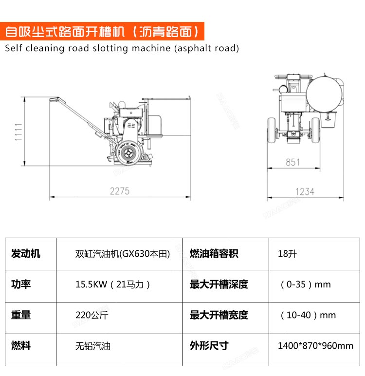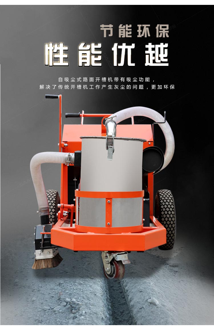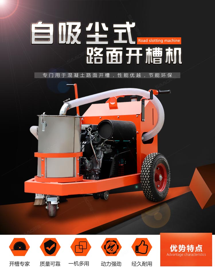 自吸塵式路面開槽機(jī)帶有吸塵功能,解決了傳統(tǒng)開槽機(jī)工作產(chǎn)生灰塵的問(wèn)題,更加環(huán)保。我們這款路面開槽機(jī)是專門用于混凝土路面開槽的,性能優(yōu)越,節(jié)能環(huán)保。