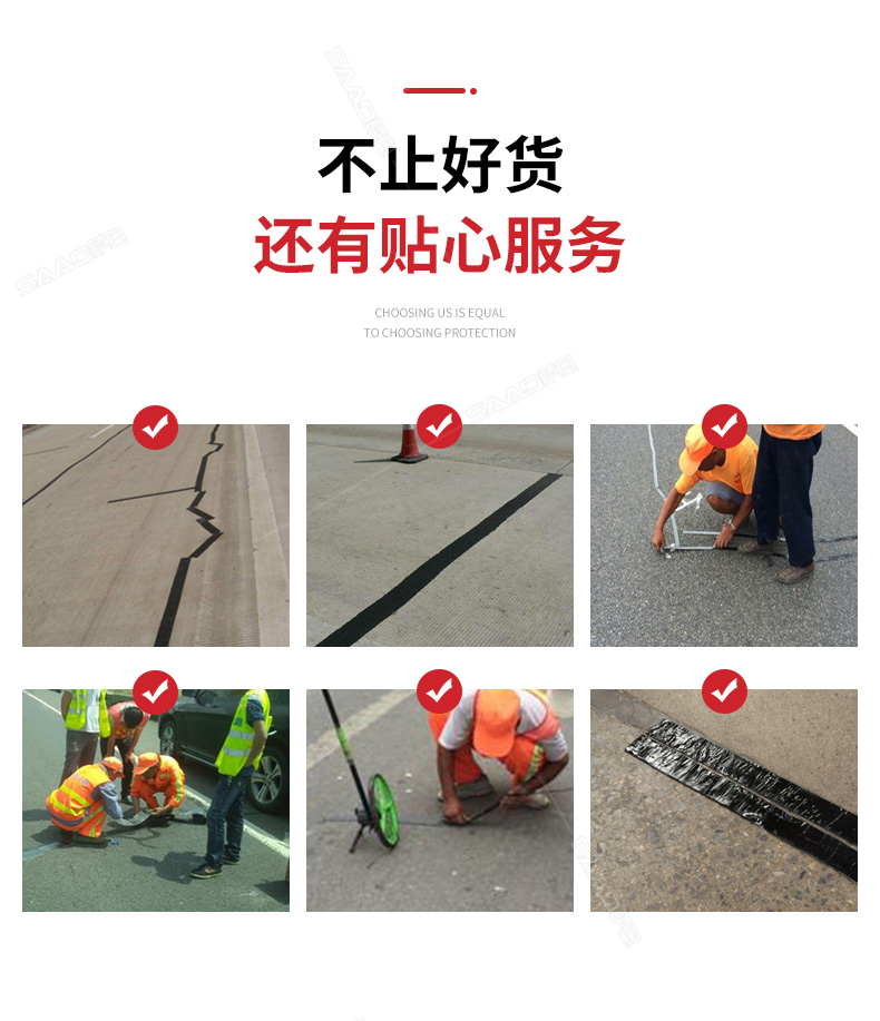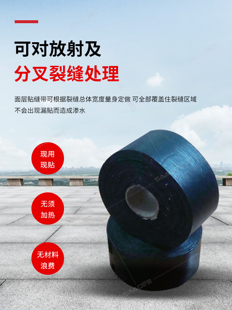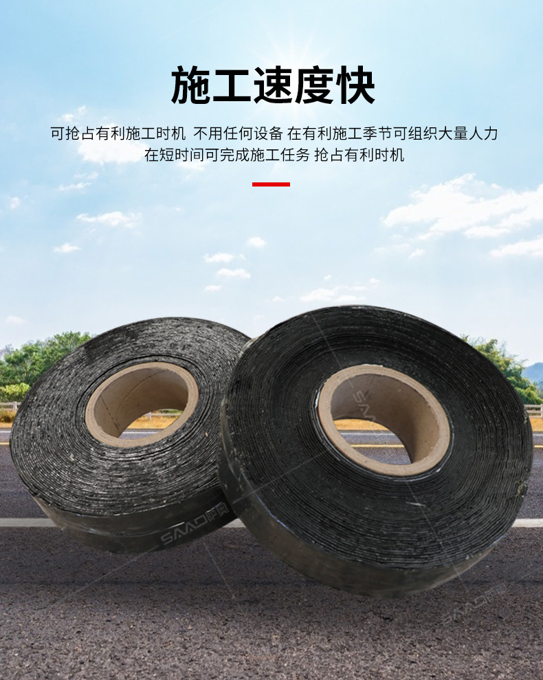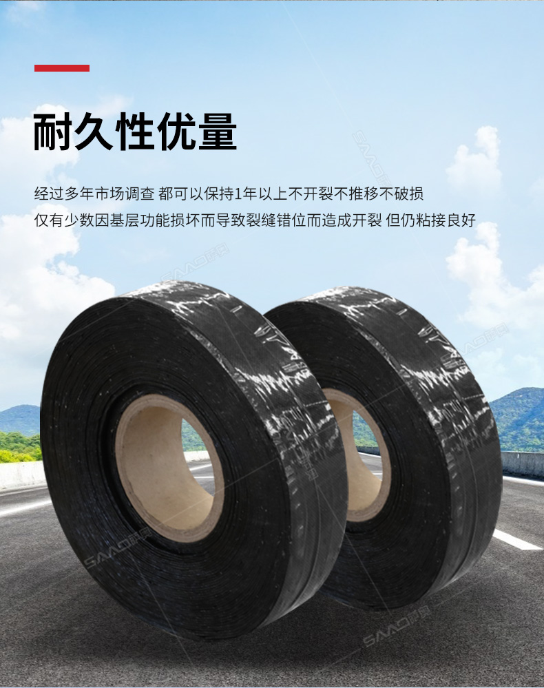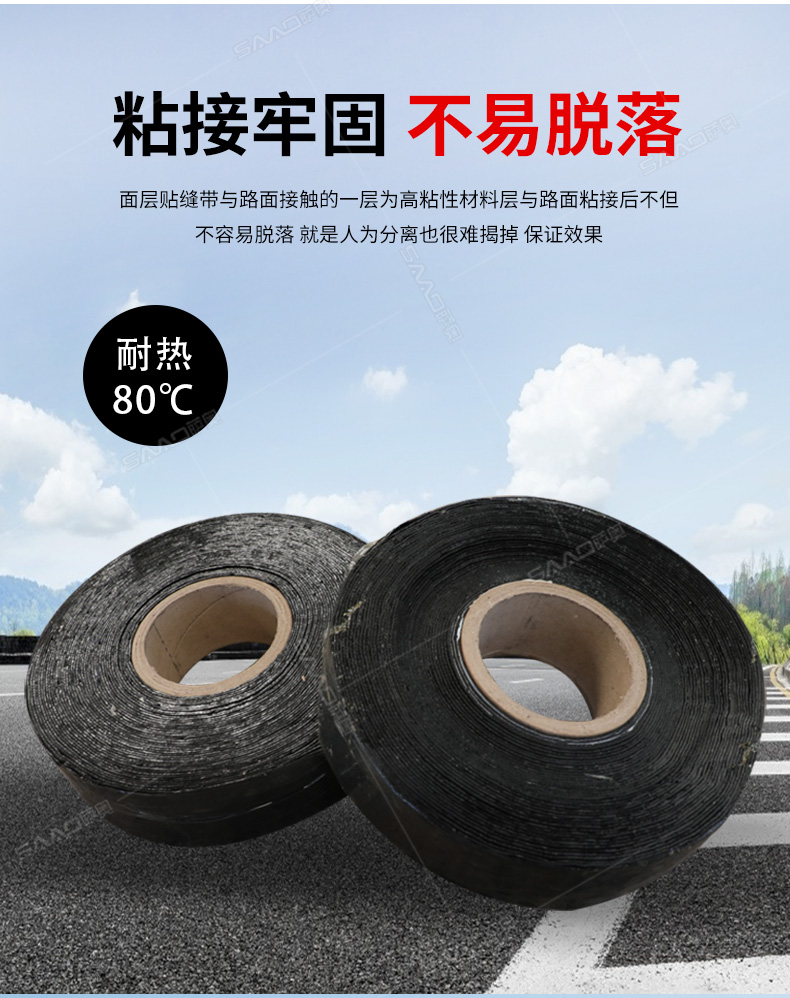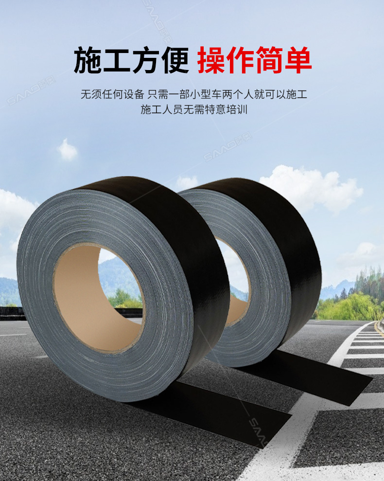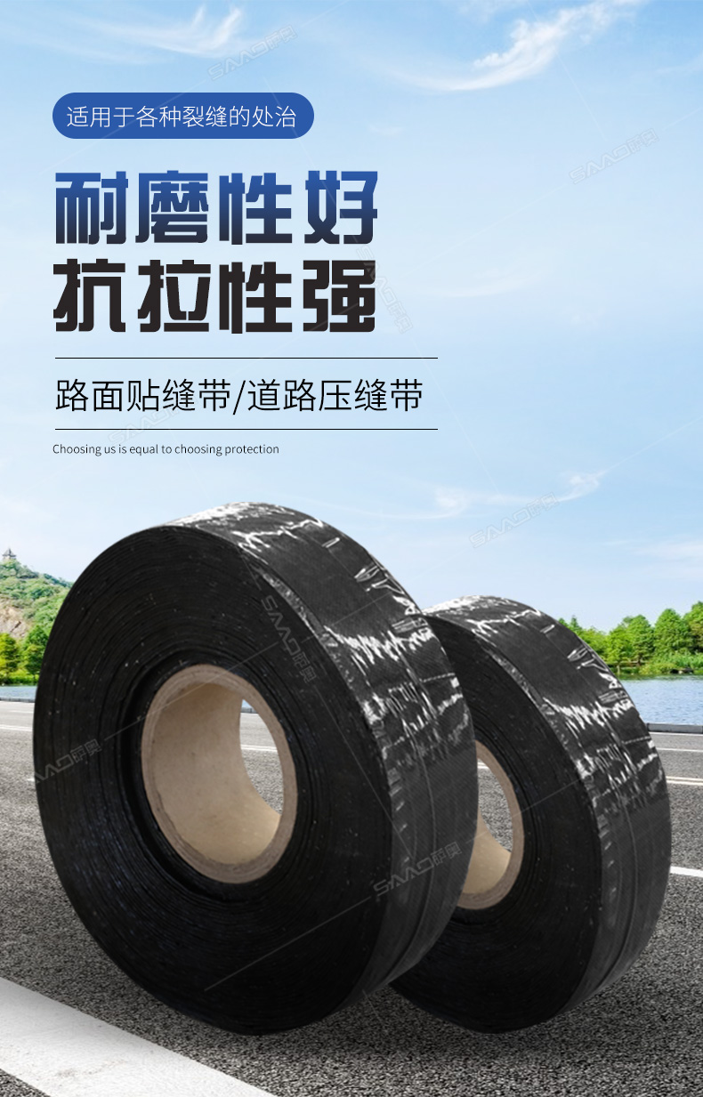 路面貼縫帶適用于水泥、鋼板、瀝青路面、小坑槽、水井蓋的各種裂縫包括反射裂縫的處治,亦可用于封層罩面等施工前的裂縫處治。