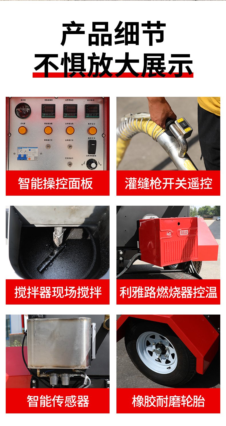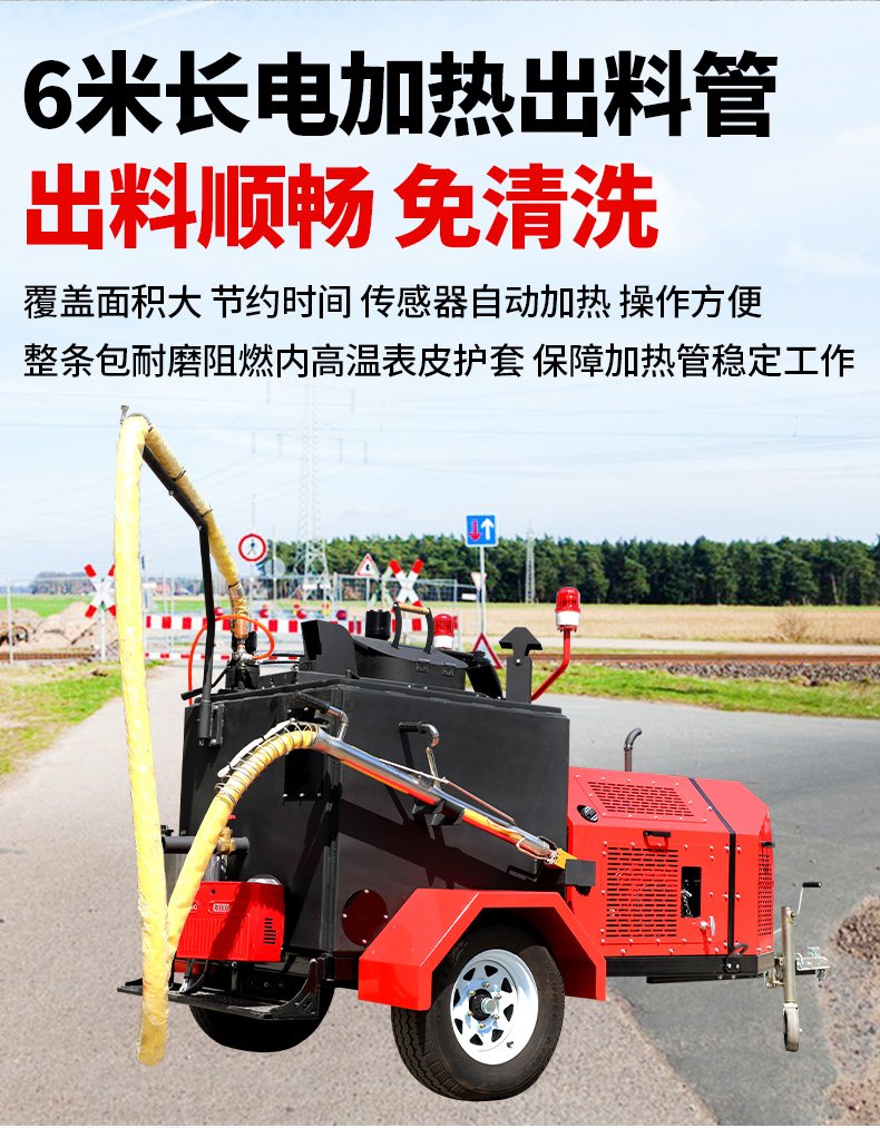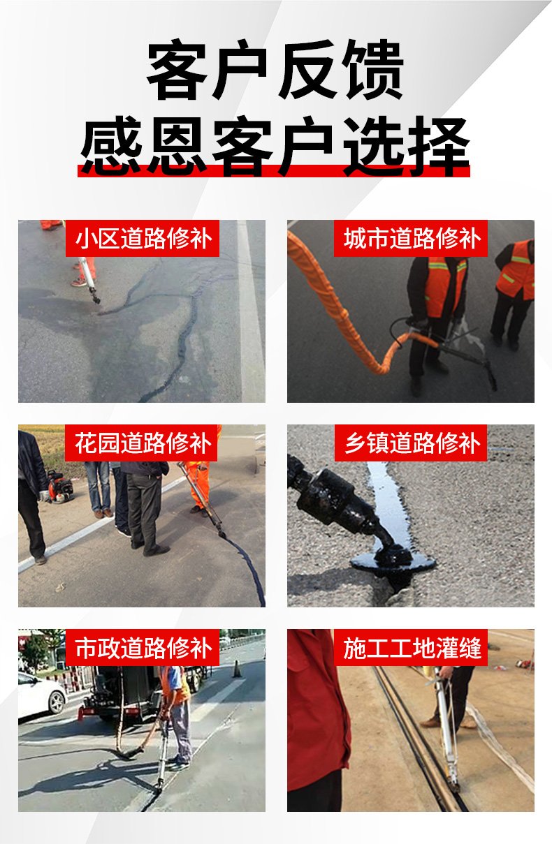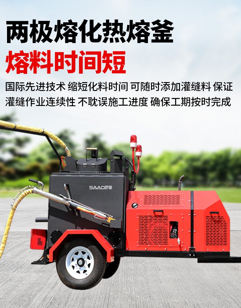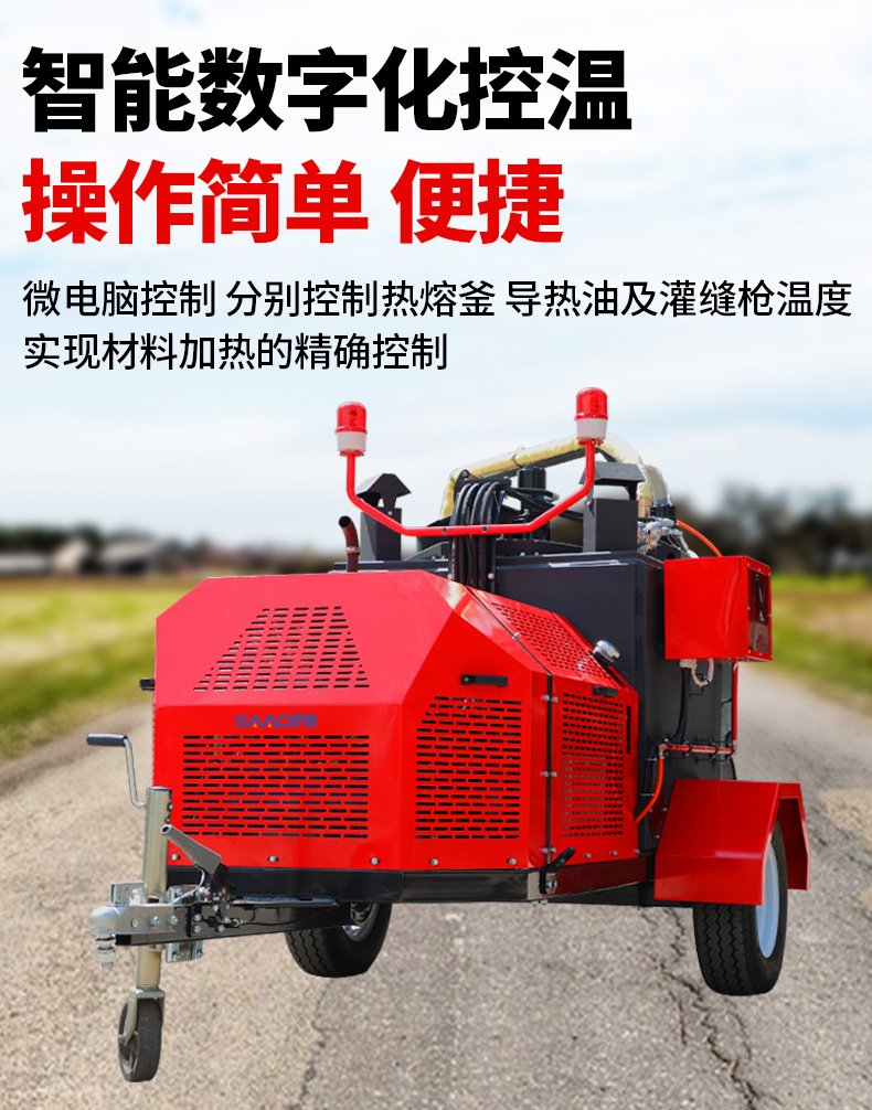 主要功能:通過一根單獨的加熱軟管將加熱融化后的橡膠瀝青基密封材料連續(xù)注入清理過的縫隙完成裂縫病害密封處理。輔助灌縫設(shè)備完成裂縫密封的設(shè)備有(開槽機、熱風(fēng)槍),密封材料主要是瀝青基橡膠密封膠。