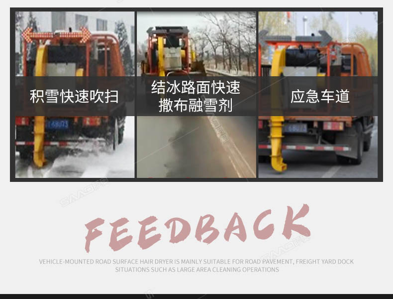 車載路面吹風機針對目前高速公路路邊角清掃困難而生產的一款路面清掃設備,具有快速、高效、低能耗、低工作強度等優點
