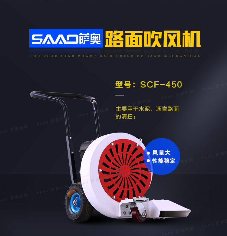 馬路吹風機用于水泥、瀝青地面路面的清掃,清潔。 產品性能: 名優動力,性能穩定;動力平衡極好的風頁,保證整機的穩定性;超大風量,性能優越。