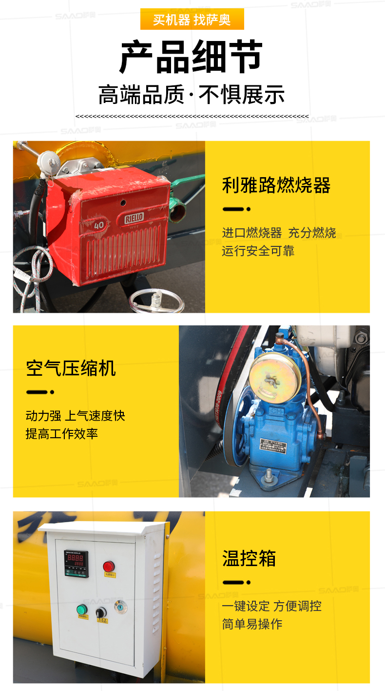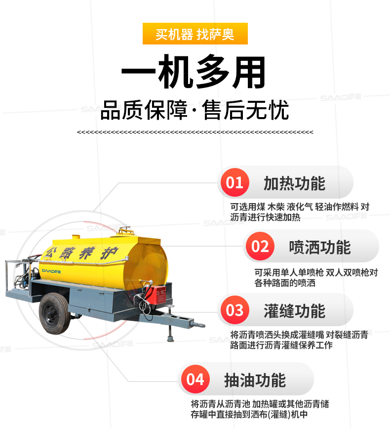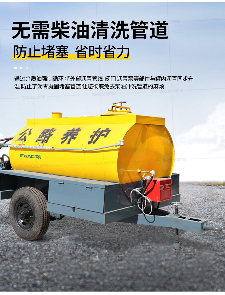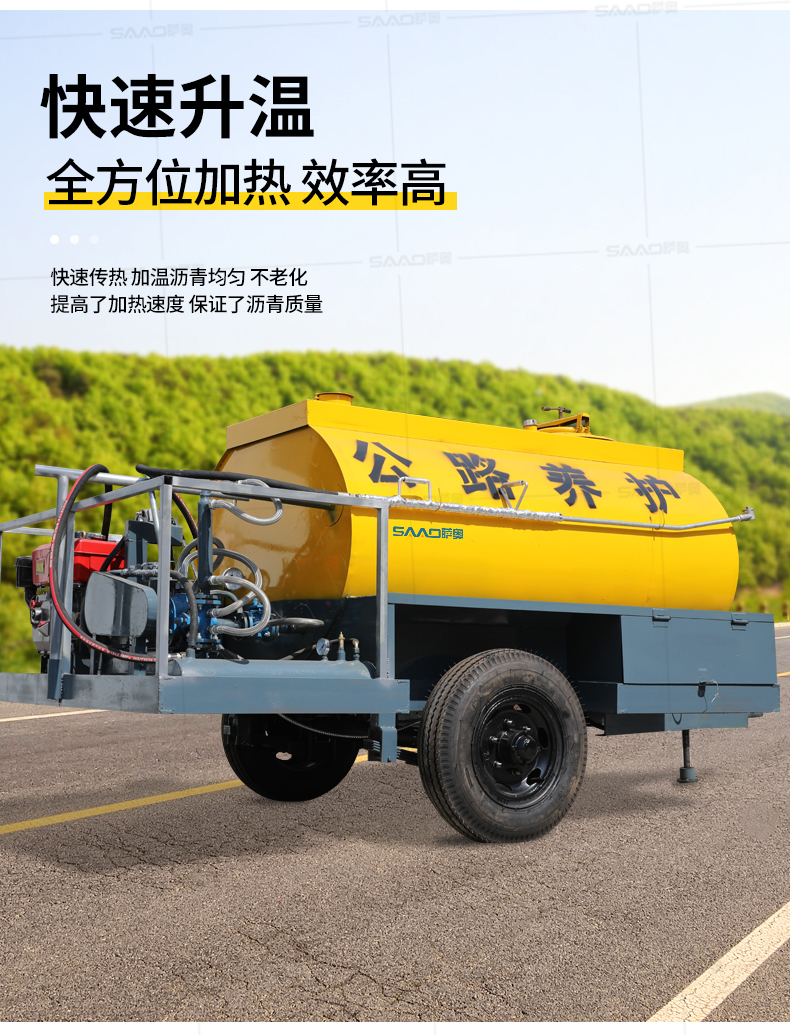 1、加熱功能:可采用煤、木柴、液化氣、輕油作燃料,對瀝青進行快速加熱。