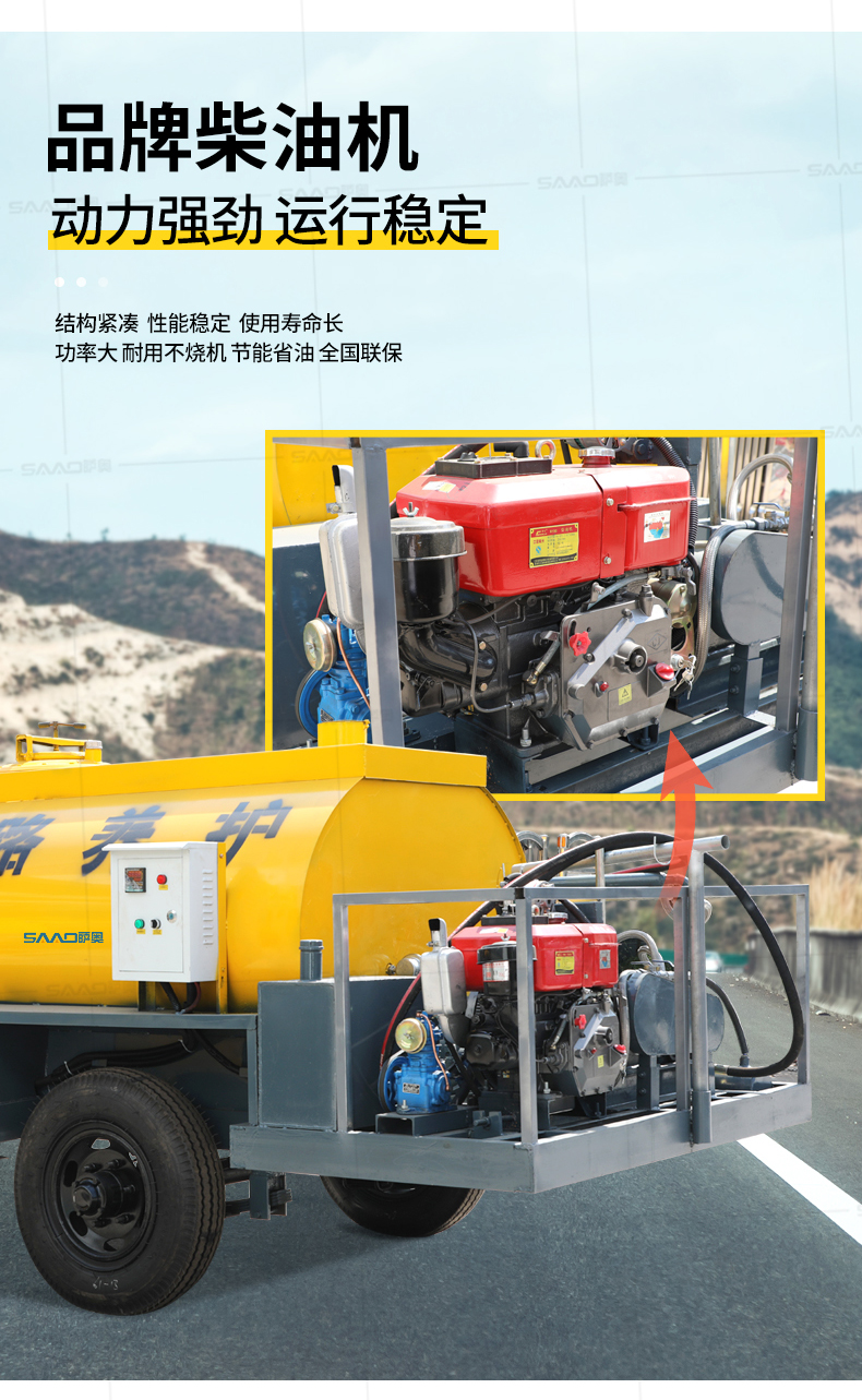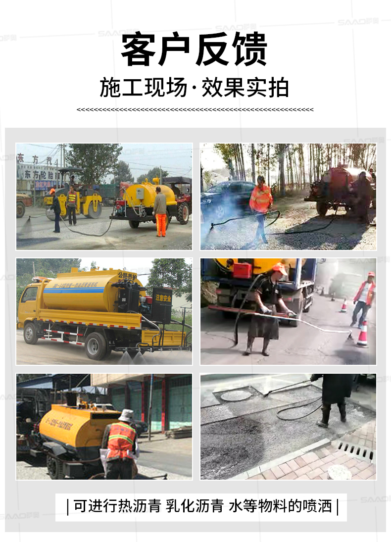 2、噴灑功能:可采用單人單噴槍、雙人雙噴槍、自動排噴對各種路面的噴灑。