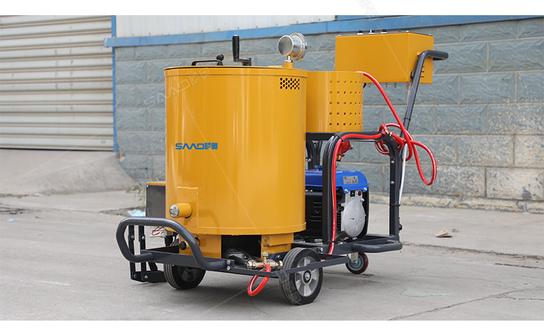 瀝青灌縫機智能控制面板方便操作人員可隨時掌握瀝青膠溫度,方便調節,配有萬向輪,可360度各方位滿足灌縫需求,出料管采用電加熱,不用擔心出現瀝青膠凝固堵塞灌縫現象,能270度彎折的出料軟管,充分滿足不同路面施工的要求。