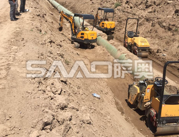 薩奧機械2臺座駕壓路機在新疆施工現場