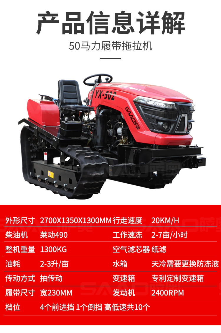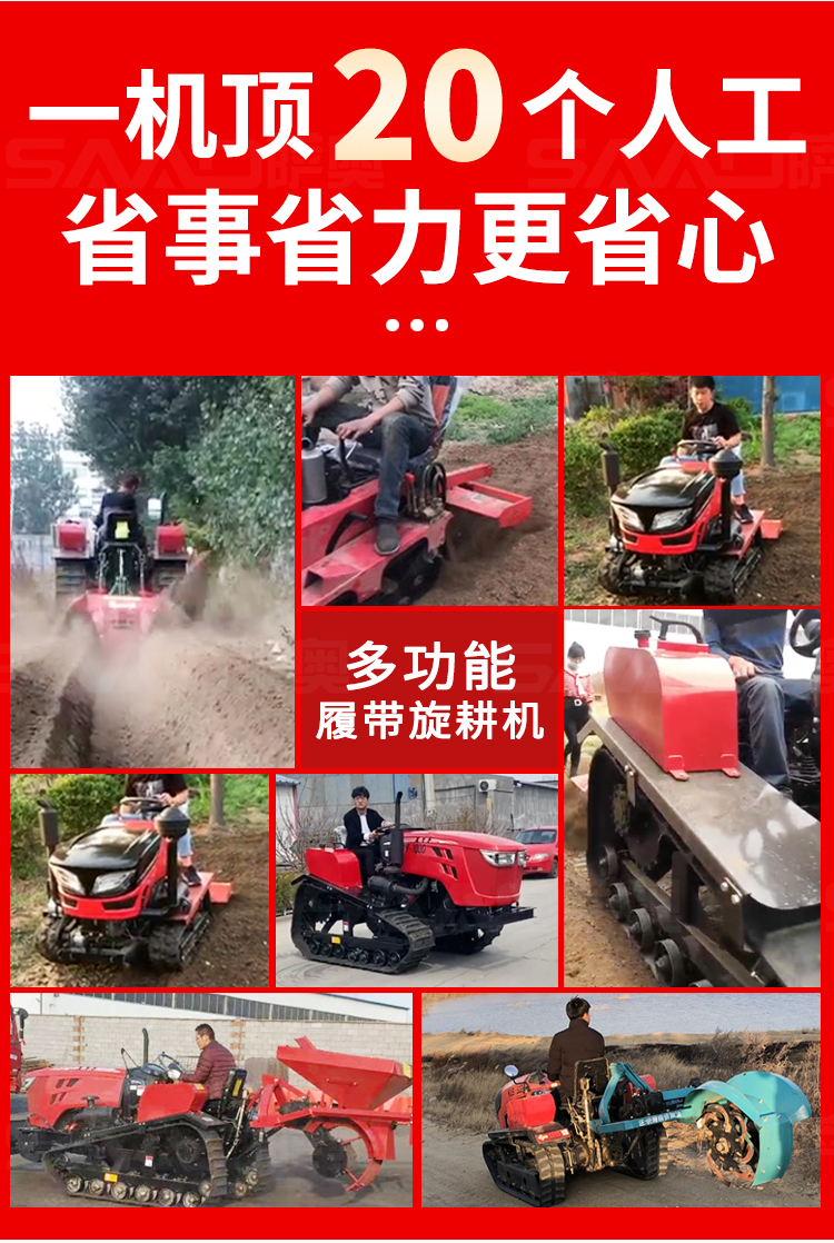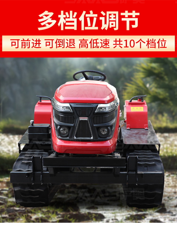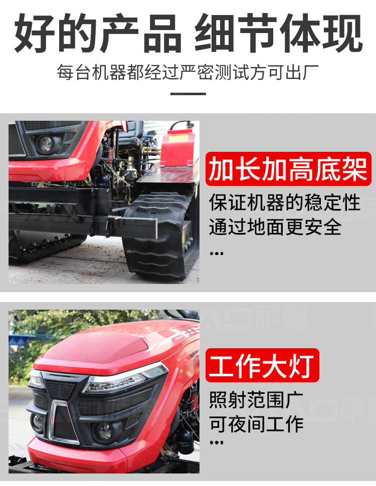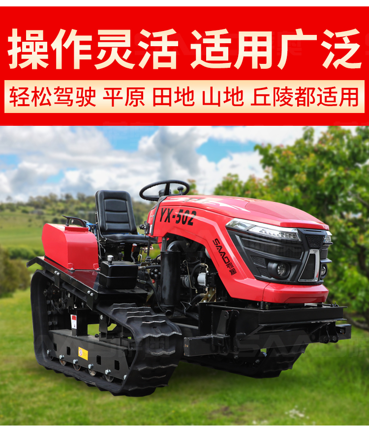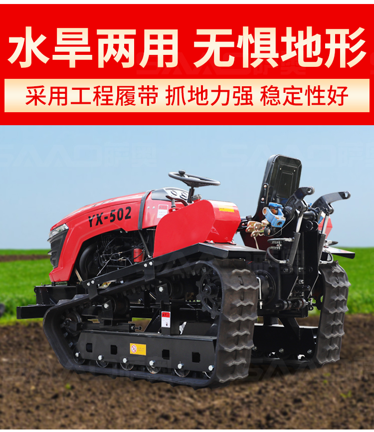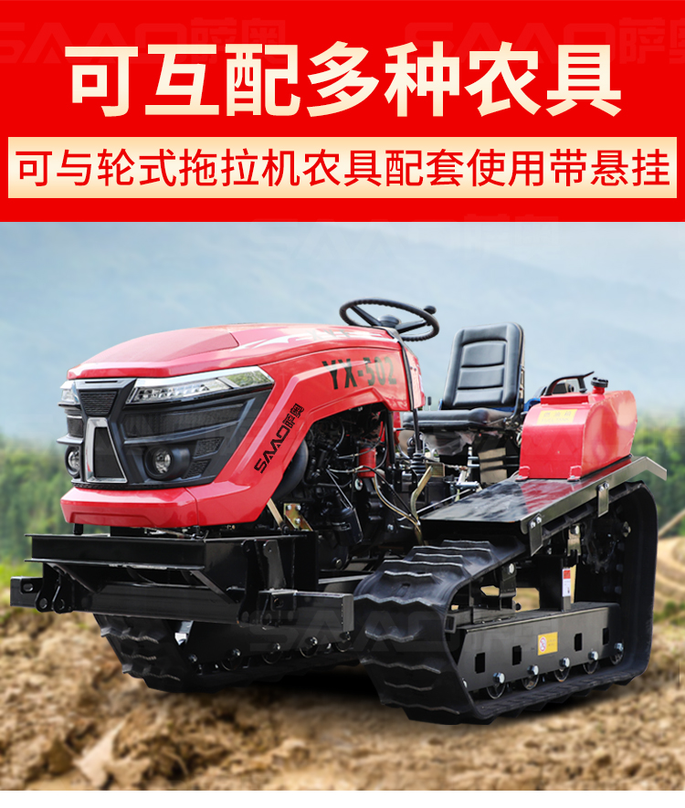 履帶拖拉機本機能完成耕、耙作業,具有碎土能力強、耕后地表平坦等特點。采用寬耕幅、對稱懸掛使輪跡全部覆蓋,有省時、省力、作業質量高成本低等特點。