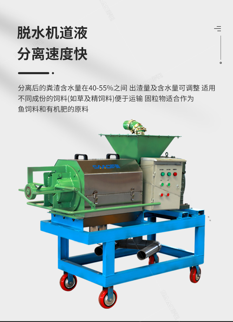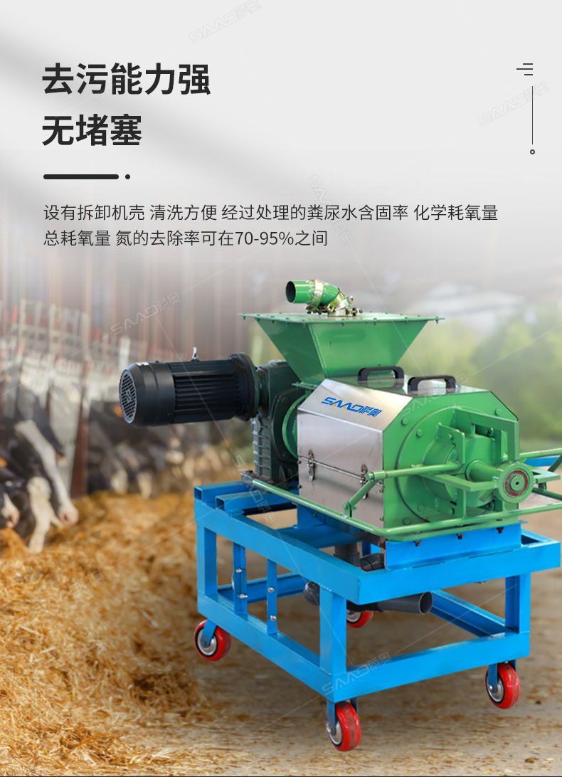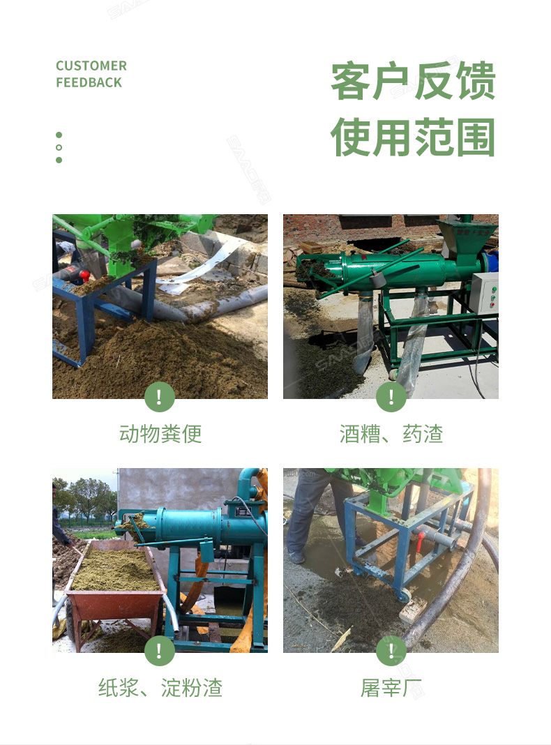 禽畜類糞便固液分離機能將雞糞、牛糞、豬糞等禽畜糞便原糞水分離為液態(tài)有機肥和固態(tài)有機肥。液態(tài)有機肥可直接用于農作物利用吸收,固態(tài)有機肥可運到缺肥地區(qū)使用,也可起到改