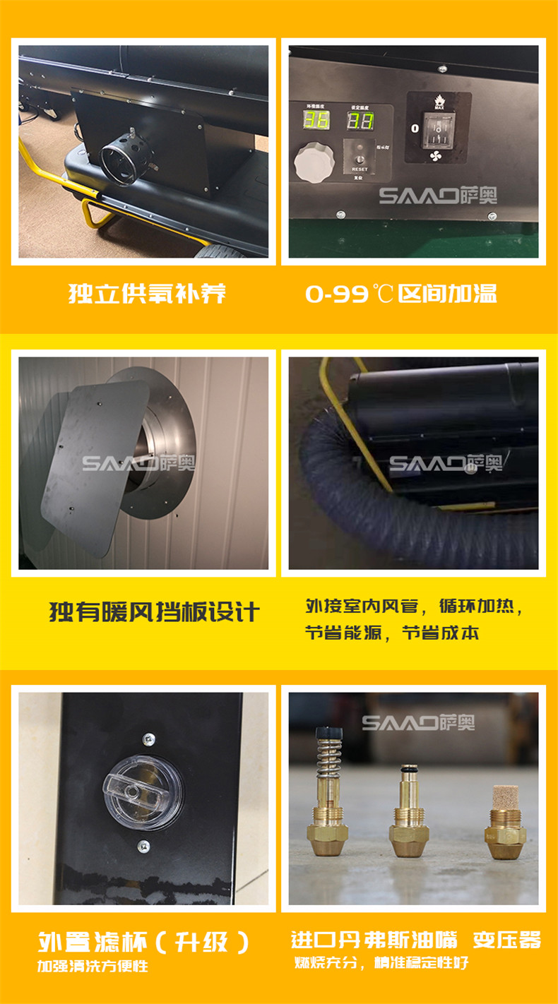 用于大場景消毒房高溫殺菌,畜牧養殖業取暖,蔬果大棚取暖,建筑烘干取暖,木材烘干等;