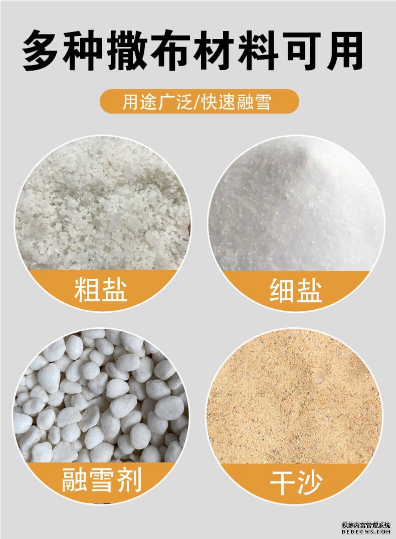 融雪劑撒布機是車載式撒布機,適用于冰雪路面防滑沙料和融雪劑的撒布,是市政公路、高速公路的融雪撒布的便利設備。