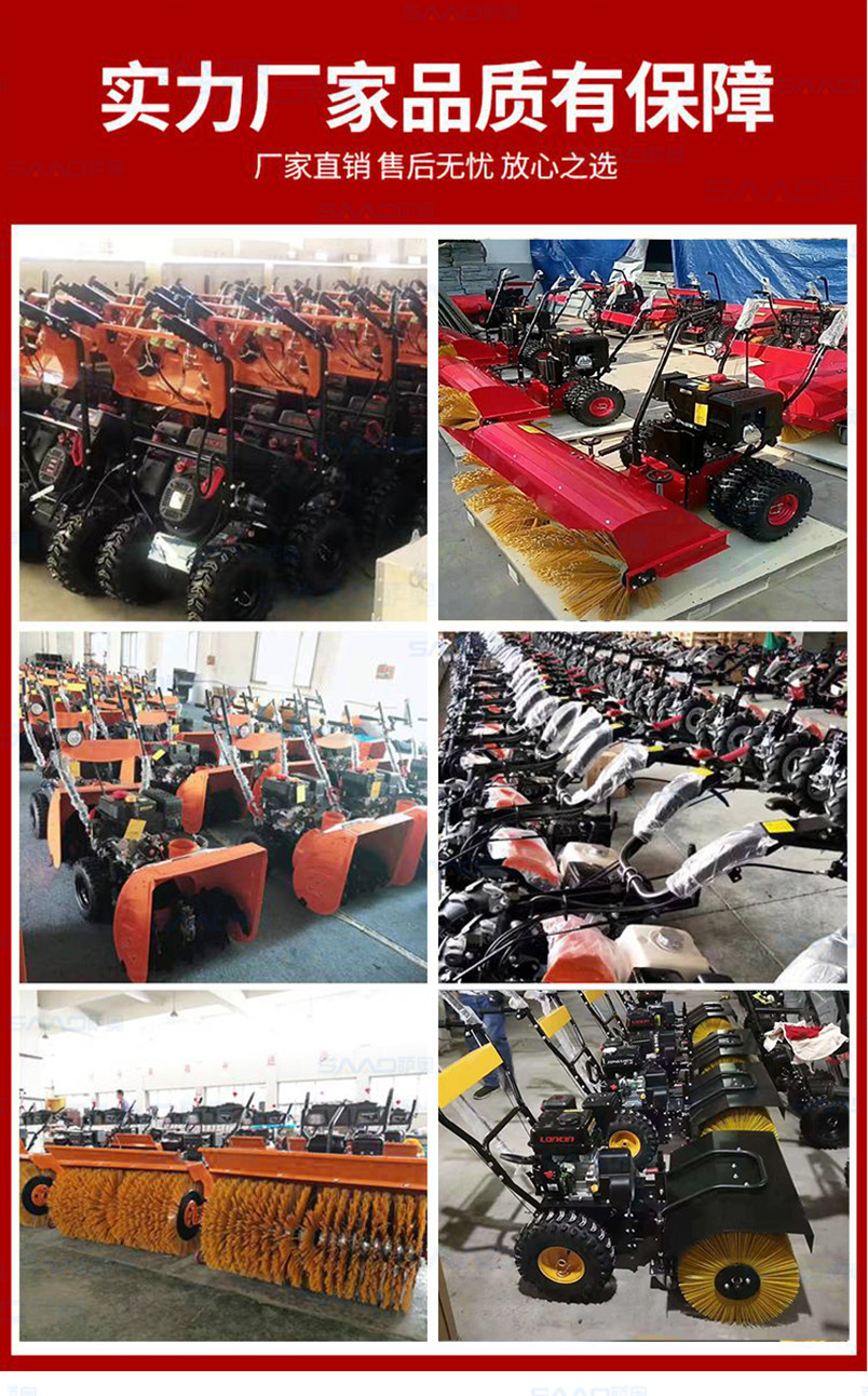 小型掃雪車由中型卡車或重型卡車、四缸汽車發動機、吸 雪管、鼓風機、排雪管、吸雪口、吸雪口液壓升降裝置、 旋轉式清掃刷、清掃刷連桿、固定架、 清掃刷液壓