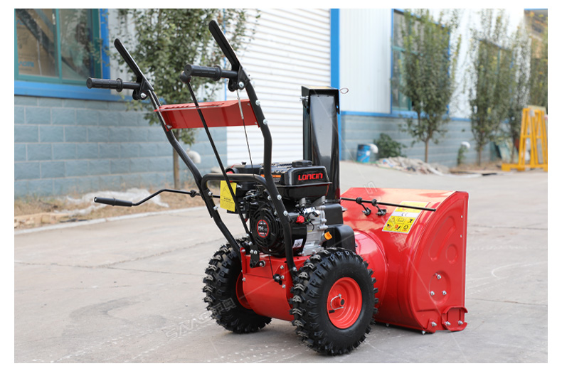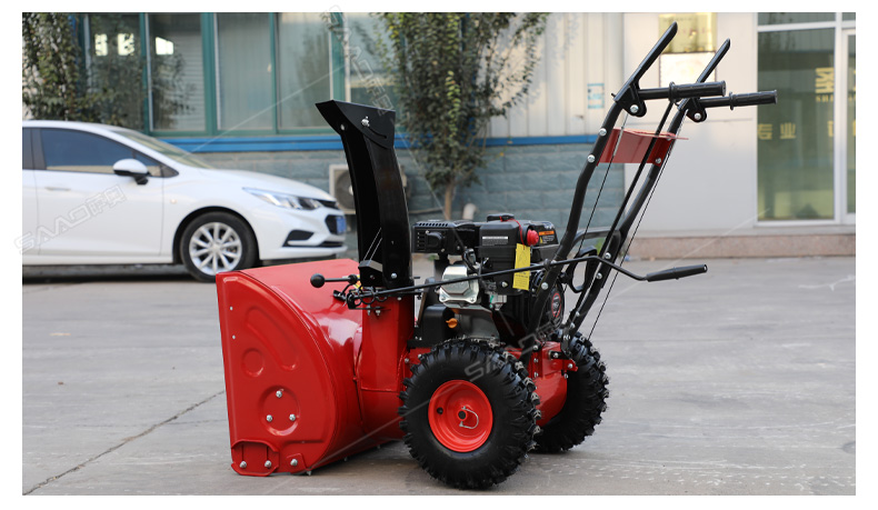 小型掃雪車由中型卡車或重型卡車、四缸汽車發動機、吸 雪管、鼓風機、排雪管、吸雪口、吸雪口液壓升降裝置、 旋轉式清掃刷、清掃刷連桿、固定架、 清掃刷液壓