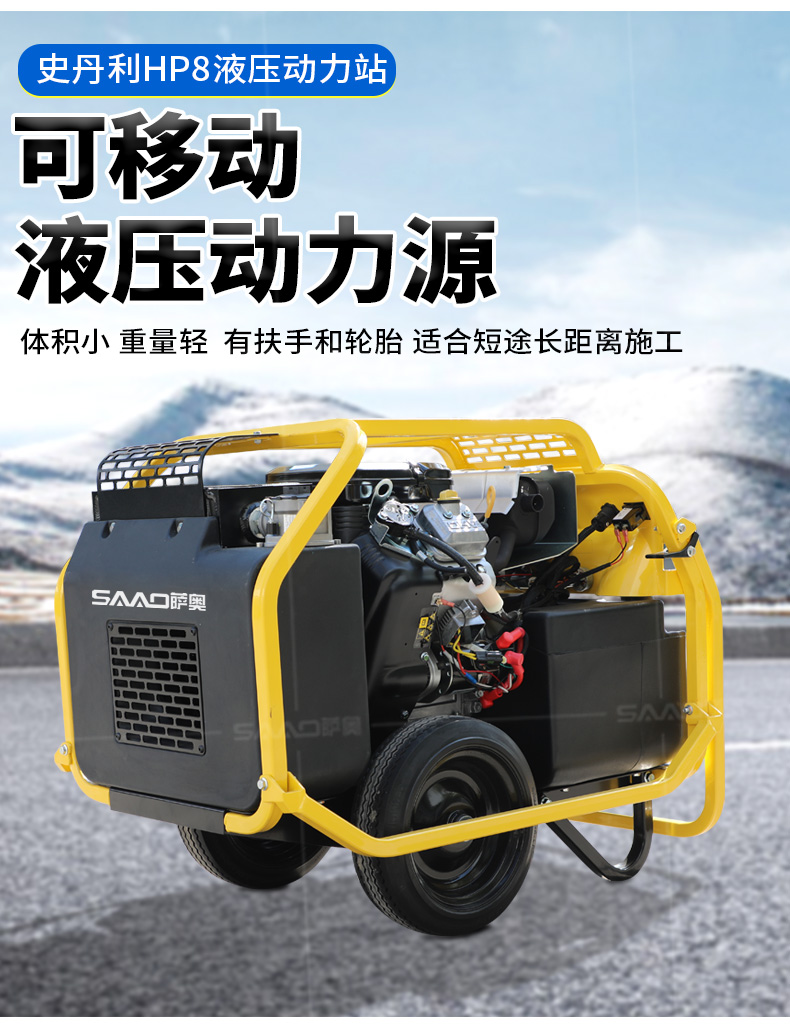 HP8動力站是為液壓設備提供持續動力的,它同時滿足1類和2類液壓設備。它采用百力通18馬力 汽油發動機,有良好的液壓油散熱系統,以滿足液壓設備可以正常、持久地工作。
