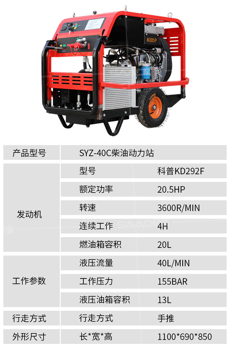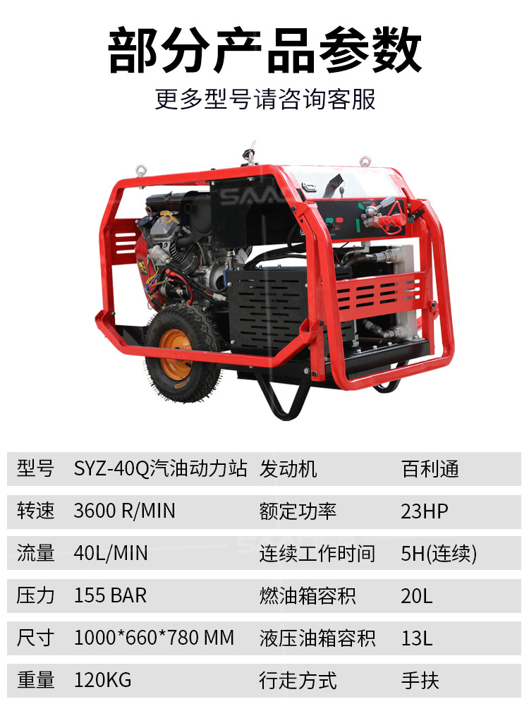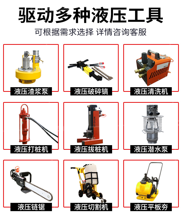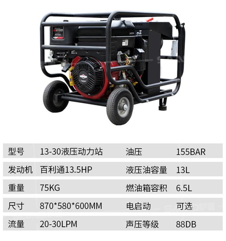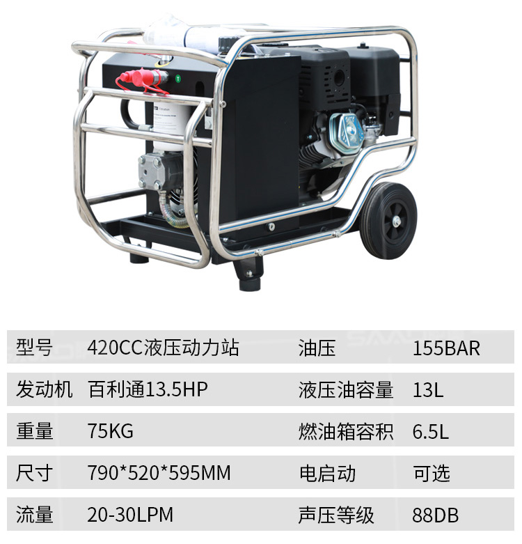 液壓動力站采用先進的技術,可提供汽油或柴油風冷式內燃發動機,燃燒效率高,重量輕,堅固耐用,使用壽命長,且不用擔心發動機過載。