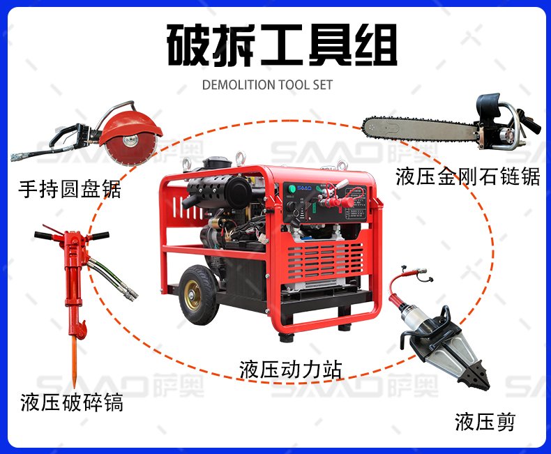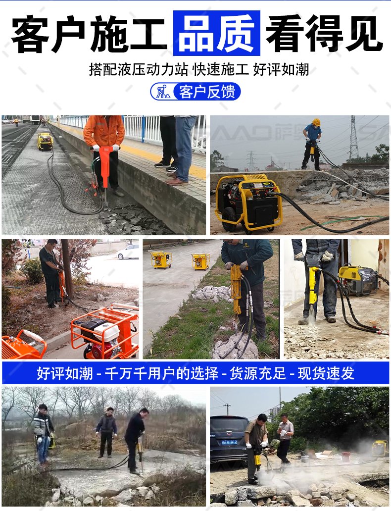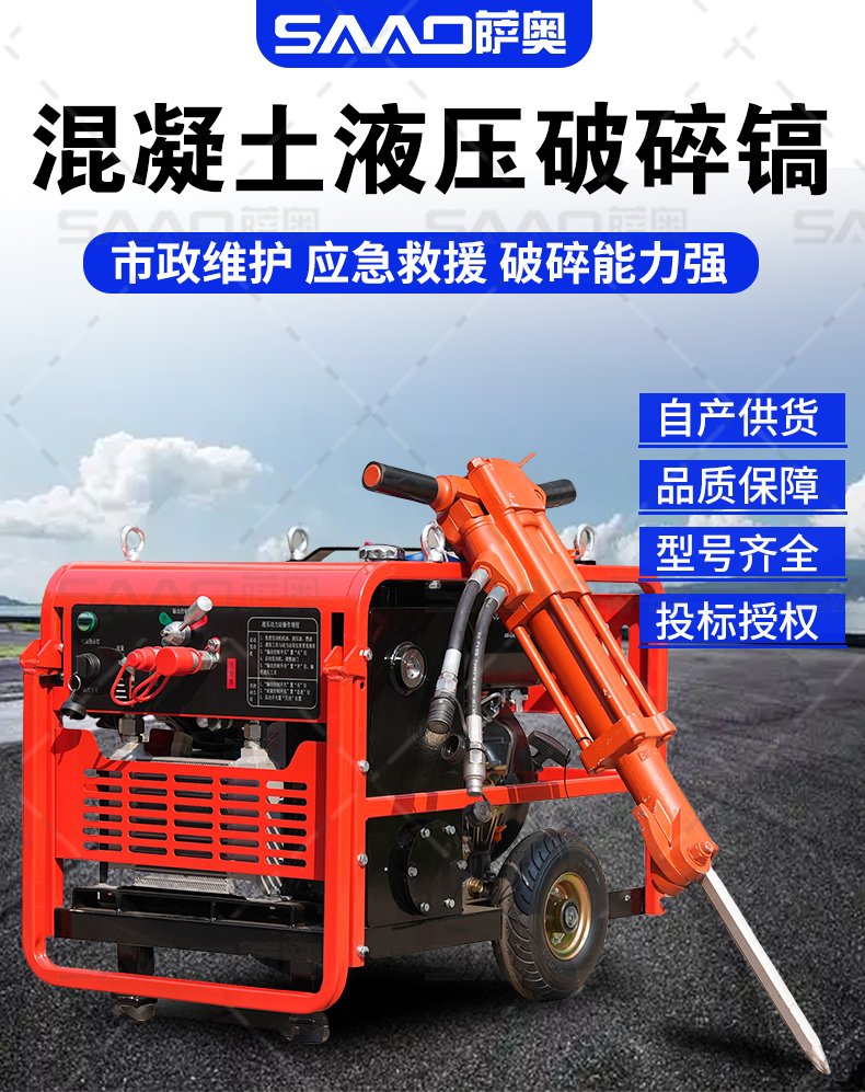 沒有哪個破碎鎬工具有液壓破碎鎬那樣的沖擊破碎能力。液壓破碎鎬的功率,在所有鎬類工具中是最高的,而其工作噪音也遠比氣動工具要小。薩奧液壓破碎鎬是您的最佳選擇。同樣系