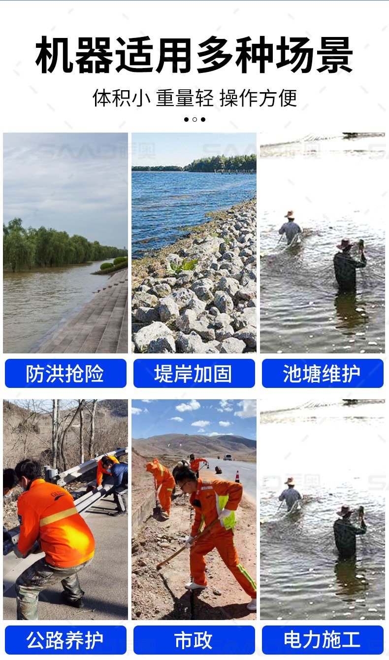 艱苦的工作,需要強勁的設備! 樁桿、柵欄桿、路標,防撞欄,帳篷固定樁或其它樁桿,威平科技液壓打樁機都能快速地將您的樁打下,強勁的沖擊力令人印象深刻。 薩奧SADR-90液壓打樁