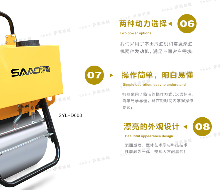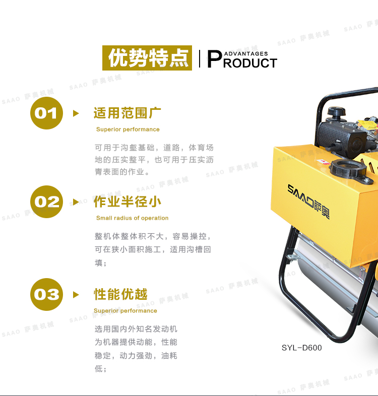 主要用于溝渠基礎,道路,體育場地的壓實整平,也可用于壓實瀝青表面的作業。