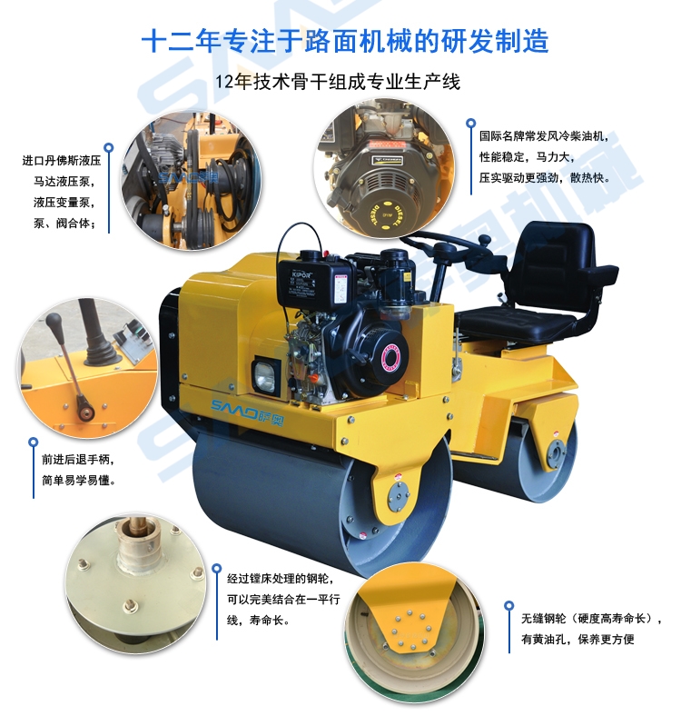 850座駕壓路機主要用于溝渠基礎,道路,體育場地的壓實整平,也可用于壓實瀝青表面的作業。