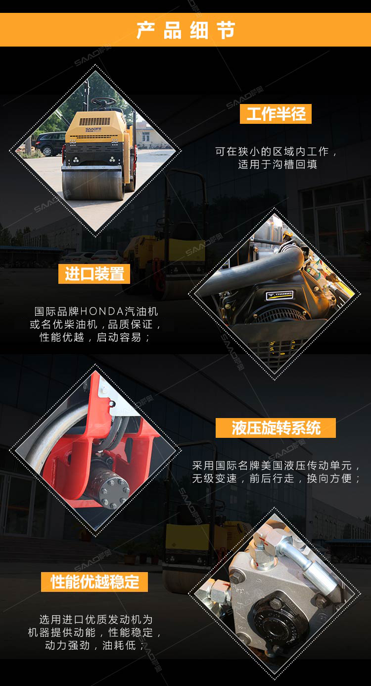 主要用于溝渠基礎,道路,體育場地的壓實整平,也可用于壓實瀝青表面的作業。